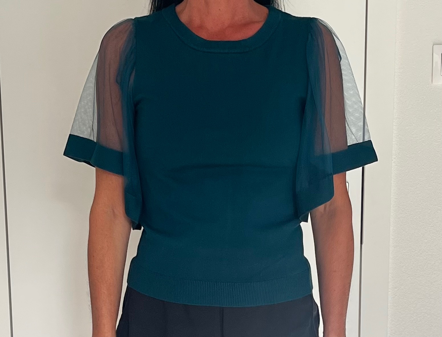 Predám elegantný Pulover farba petrolejovo zelena - velkost M sedi mne je veľký - PC 25.-€