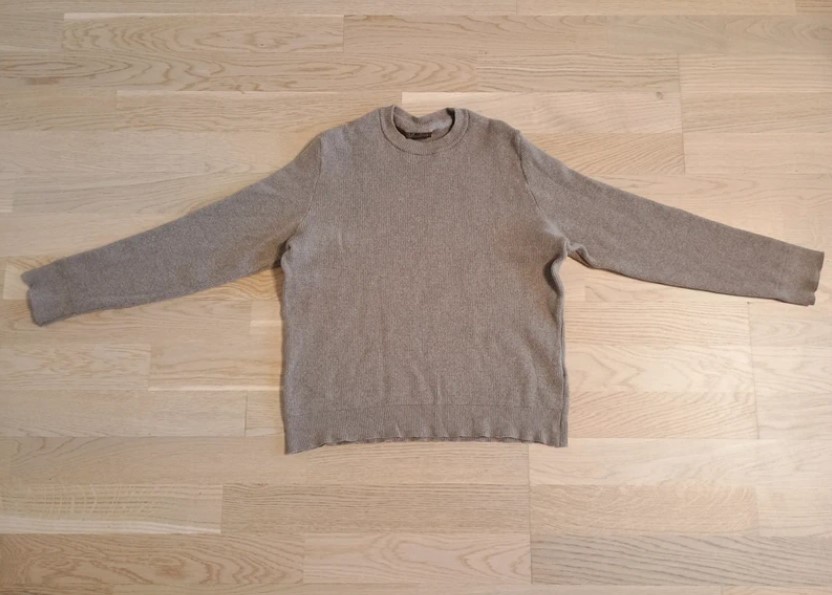 Kvalitný sveter zo 100 % merino vlny, nosený veľmi málo, vo vynikajúcom stave bez vád. Farba je svetlohnedá, elegantný a minimalistický kúsok, veľ. XL, cez prsia 50 cm, dĺžka 55 cm.