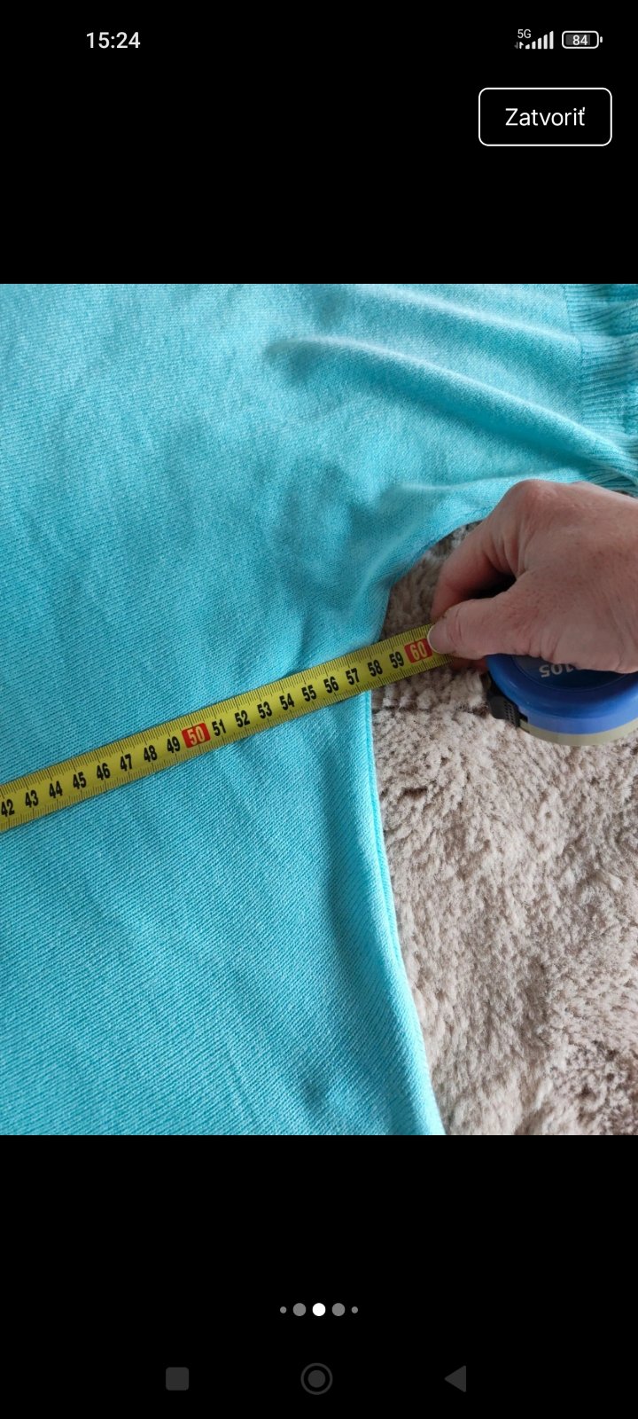 Tmavozelený/ tyzrkysový pulóver so striebornou niťou. Nosený iba mnou. Spodný lem v kľude je 33 cm natiahne sa do 45 cm.