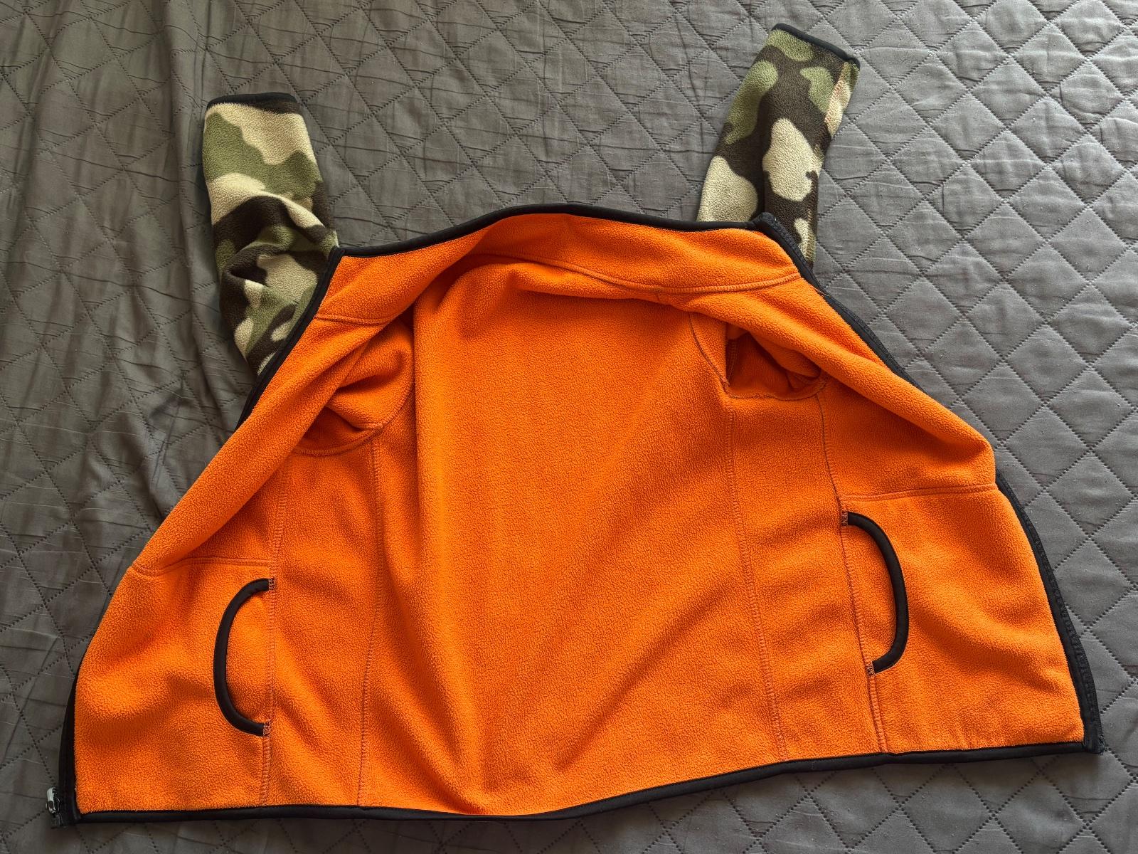 Nosena mikina bez dier a flakov, flísová, tepla, super na jeseň, zimu, odporucam. Dá sa nosiť z oboch strán.