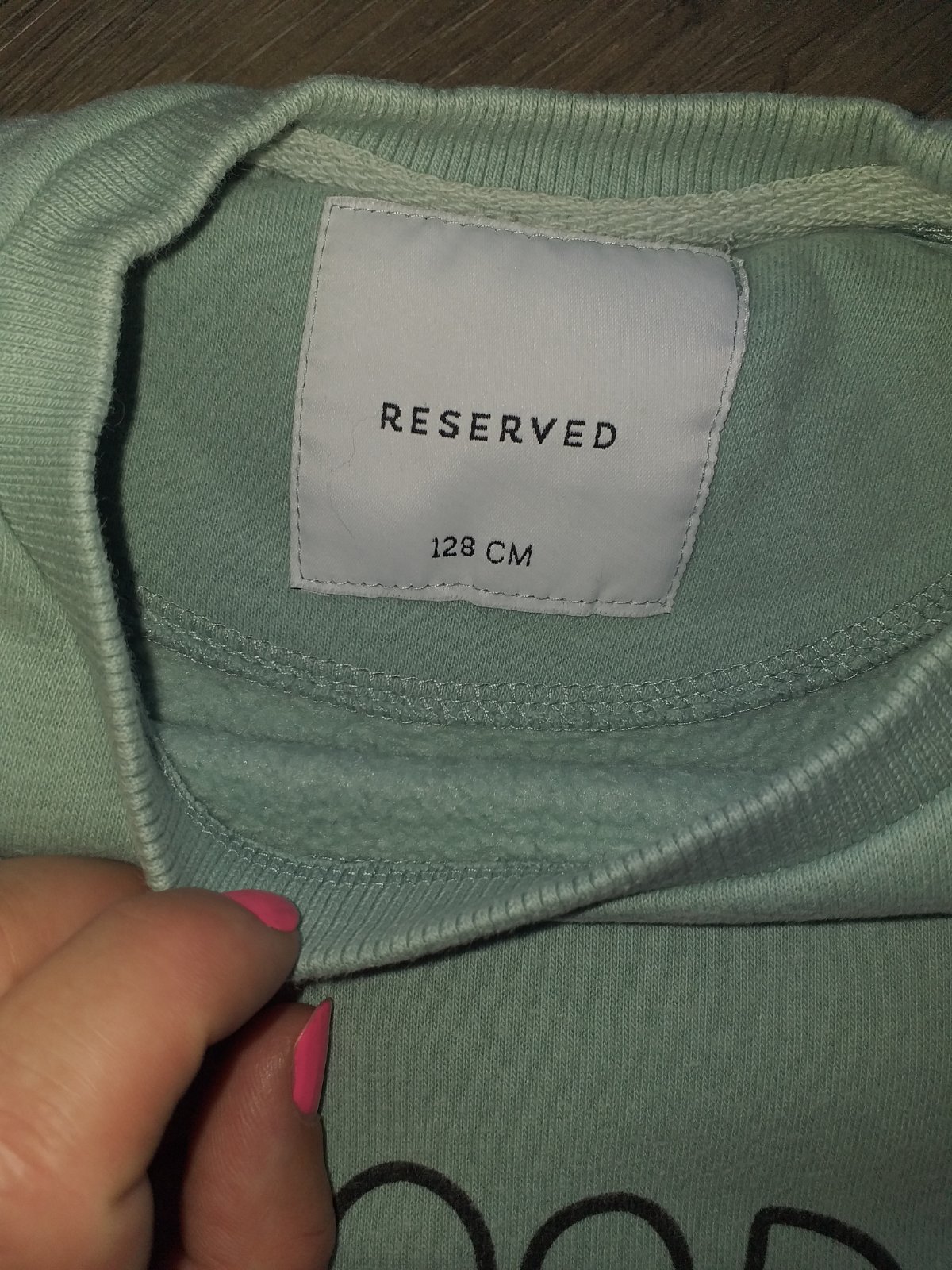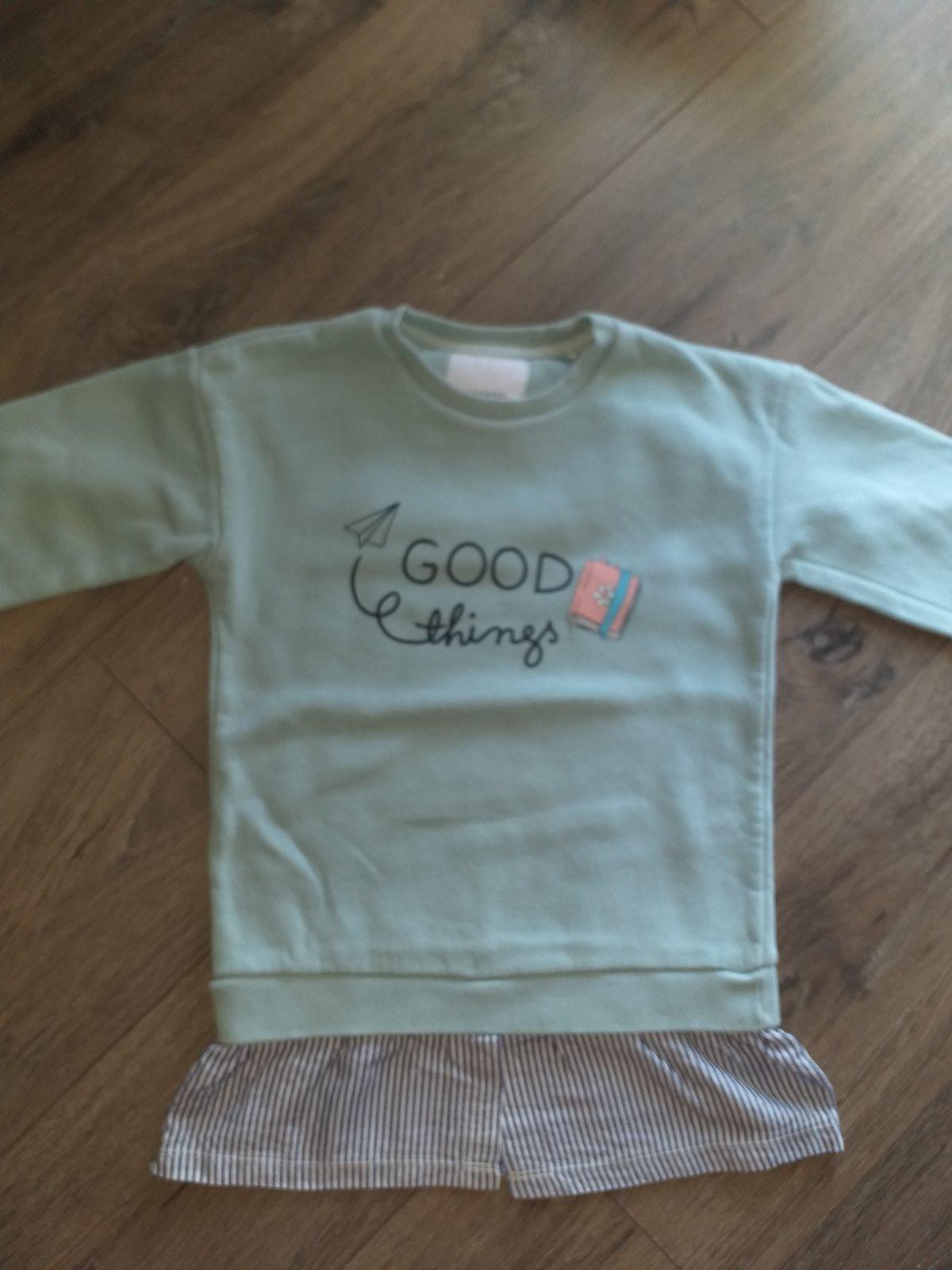 Predám kratšiu mikinku farba pekná mätovo zelená nedá sa tak odfotit, odhadujem veľkosť 128/134, dĺžka 37cm, šírka pod pazuchami 43cm, dĺžka rukáva od ramena 37cm, bežné známky nosenia.