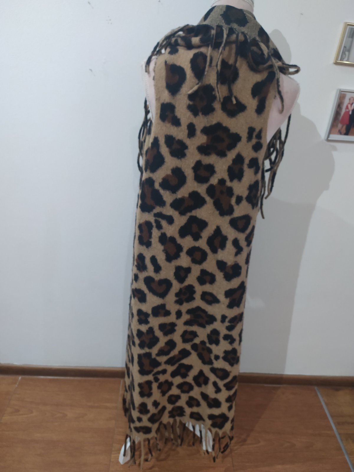 Krásna vesta ,v leo vzore,ukončená strapcami .Vhodná takmer ku všetkému oblečeniu na doplnenie oufitu.Vel Uni vhodné pre veľ S-L , elastická