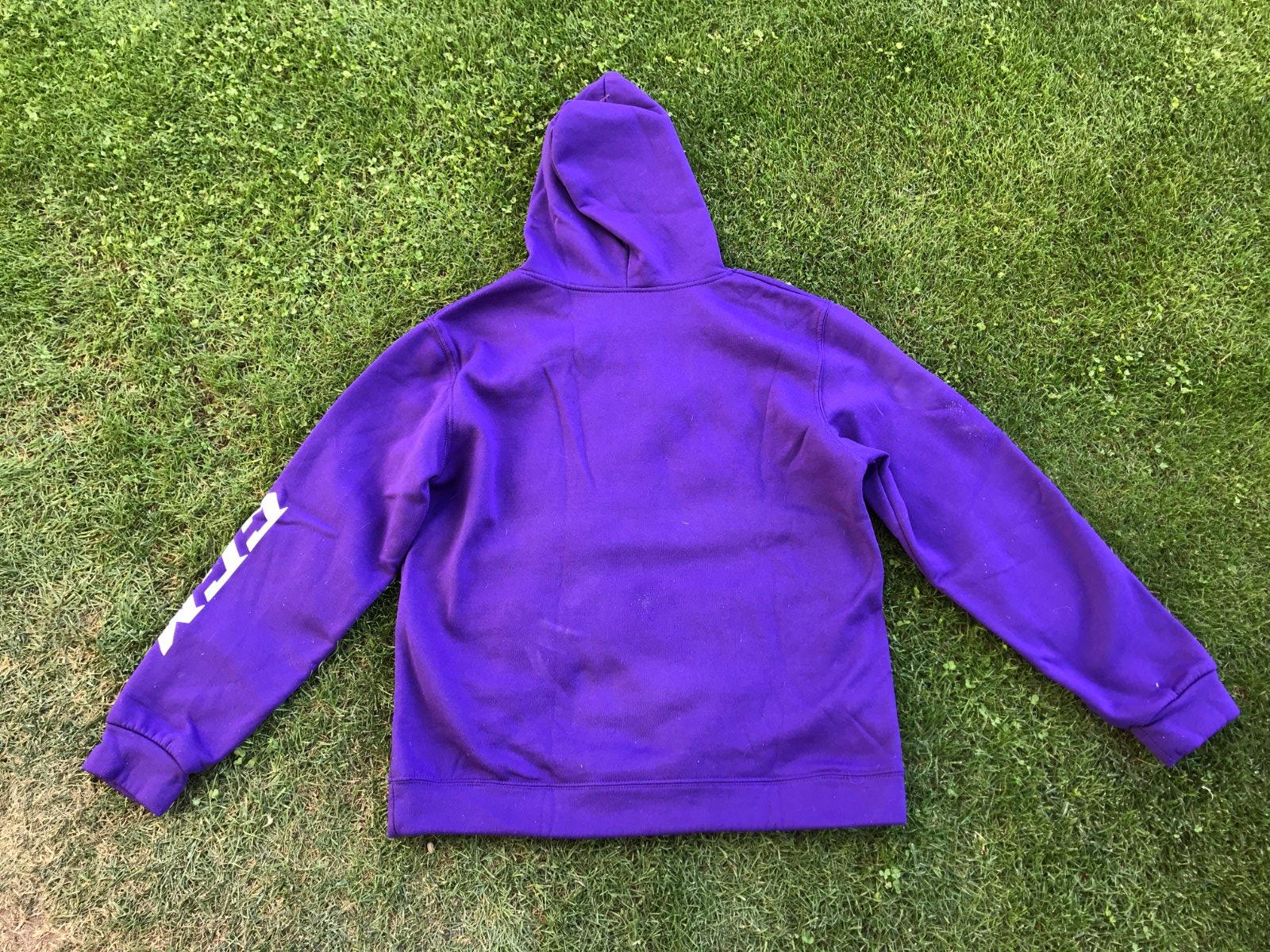 fialová mikina s kapucňou a klokaním vreckom