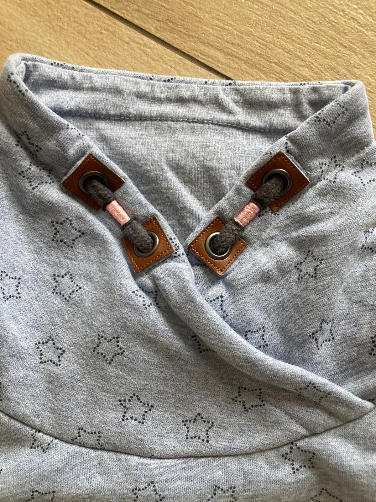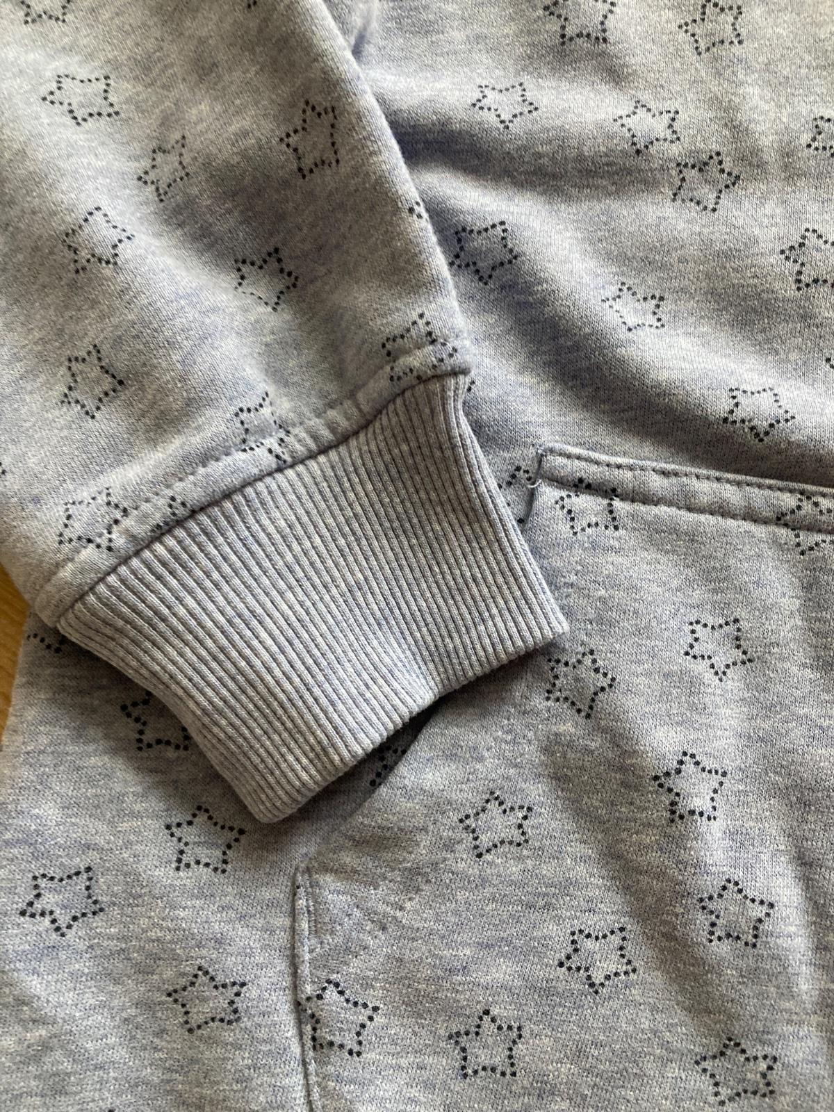 Bez poškodení, mäkká a teplá, vpredu vrecko, dĺžka 70 cm, šírka v podpazuší 43 cm, rukáv od krku 53 cm, od podpazušia 38 cm.