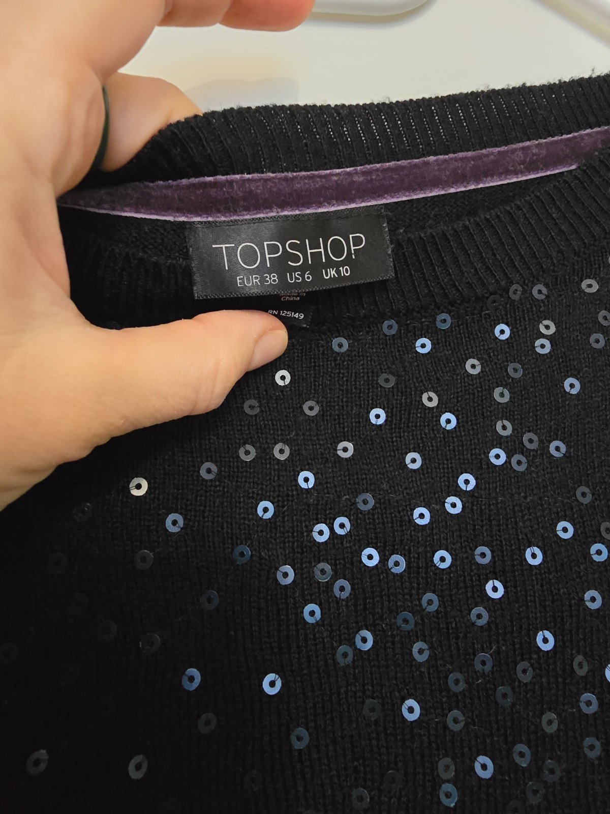 Čierny kardigan s flitrami, veľkosť UK 12, ale sedí na 38