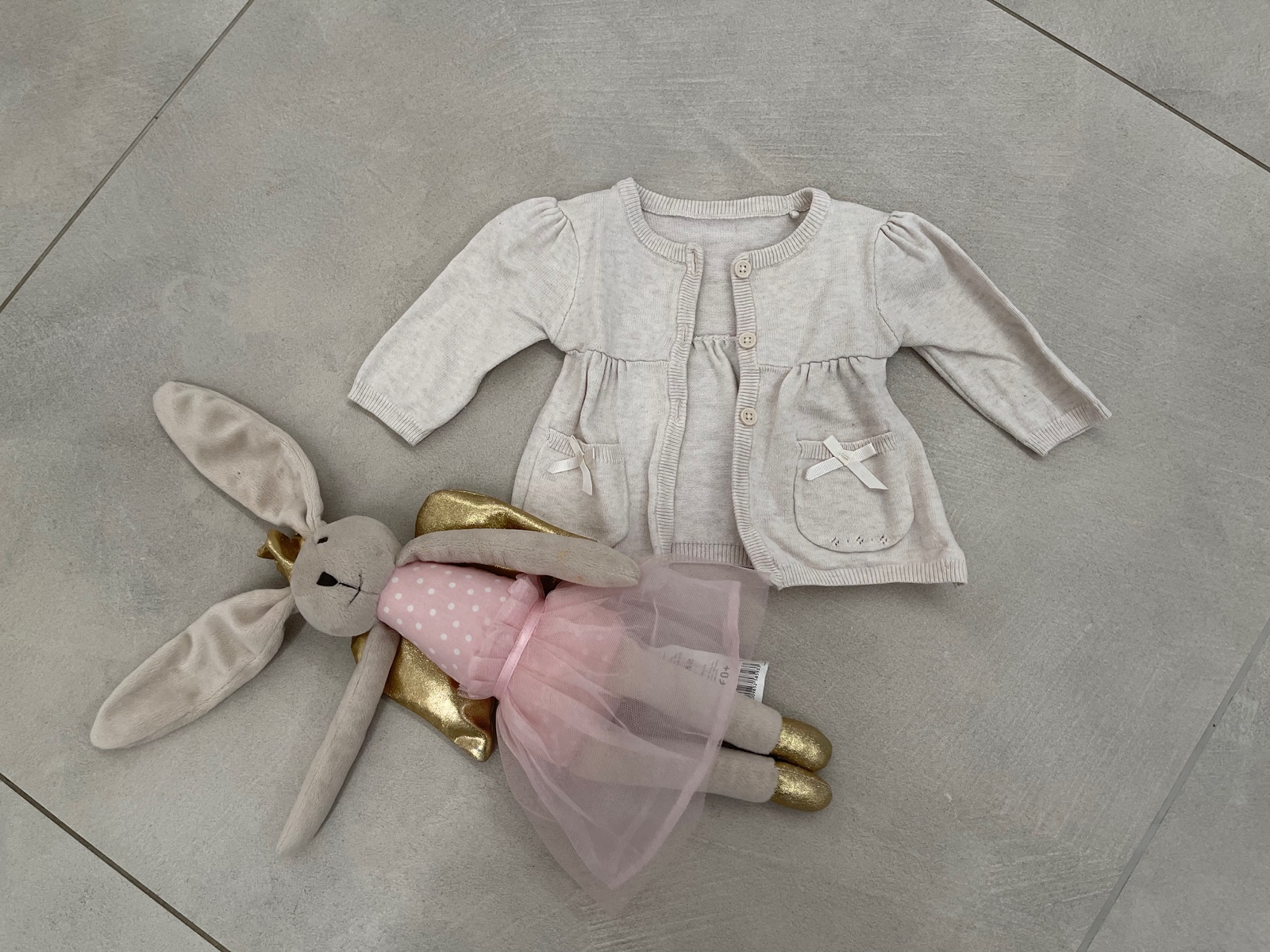 Pletené šaty, nosené ako svetrík, veľkosť do 1 mesiaca, vo veľmi dobrom stave.