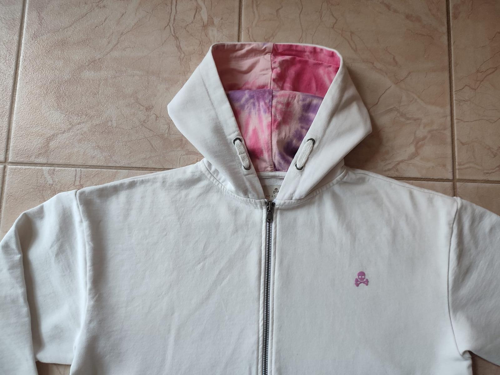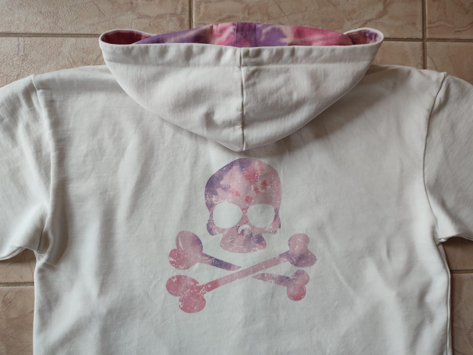 Značková mikina so zapínaním na zips a kapucňou. Farba je skôr biela vlna - nie je celkom snehobiela.