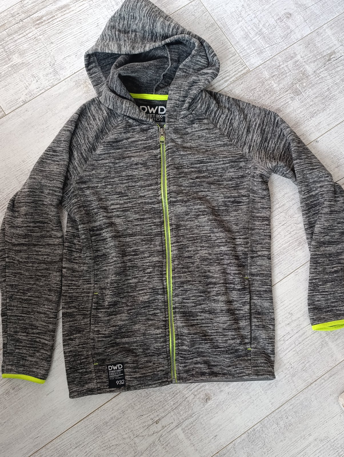 Teplá mikina s kapucňou, bledšia farba ako na fotke. Nosené ale bez poskodeni, stále pekná. Velkost 146/152 sedí.