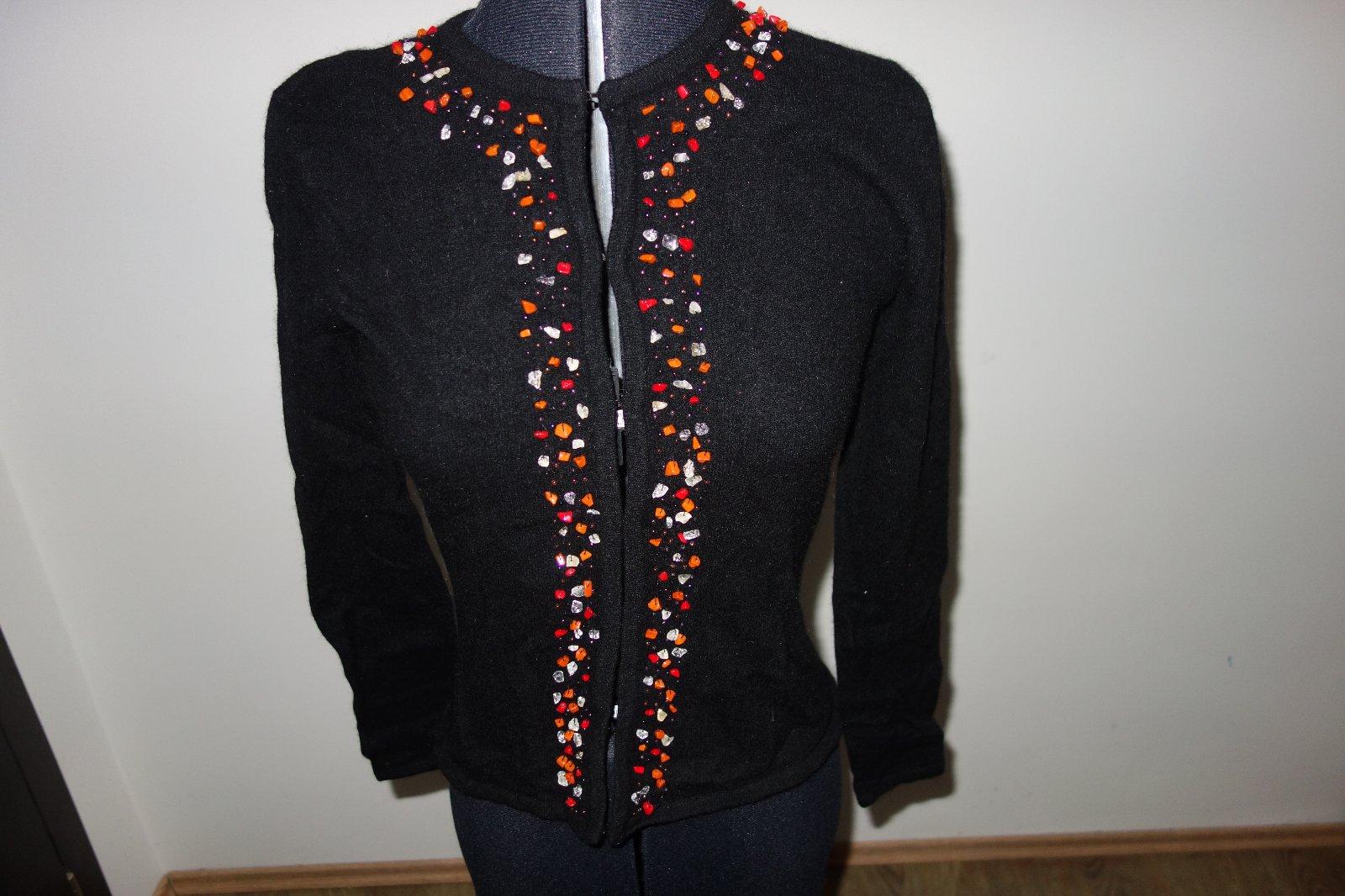 Krasny sviatocny svetricek s kamienkami vo velmi dobrom stave. Je z kolekcie Rocha. John Rocha. Zlozenim je: 70% ovcia vlna, 20% angora, 10% nylon.