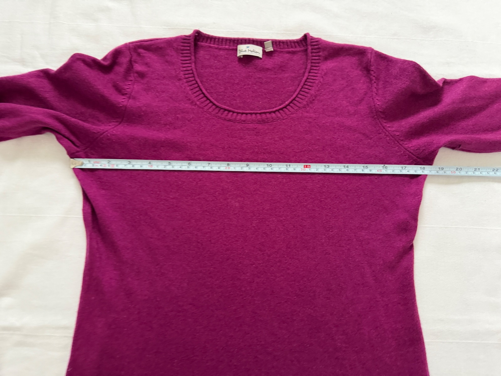 Krásny, klasický sveter v sýtej fuchsiovo-amarantovej farbe. Vyrobený z luxusnej zmesi prírodných vlákien, je neuveriteľne mäkký, ľahký a príjemný na pokožku. Tento sveter je od značky Blue Motion a je vyrobený z 55 % hodvábu (Seide) a 45 % kašmíru (Kaschmir) – prémiového materiálu, ktorý poskytuje teplo a rafinovaný lesk. Má klasický, priliehavý strih s okrúhlym výstrihom. Má rebrované manžety na výstrihu, rukávoch a leme. Veľkosť na etikete je S a všetky rozmery sú na fotografiách. Kombinácia hodvábu a kašmíru zaručuje pohodlie – sveter nesvrbí, poskytuje vynikajúcu termoreguláciu a vyzerá luxusne. Ideálny na nosenie do kancelárie pod sako aj na každodenné nosenie s džínsami.