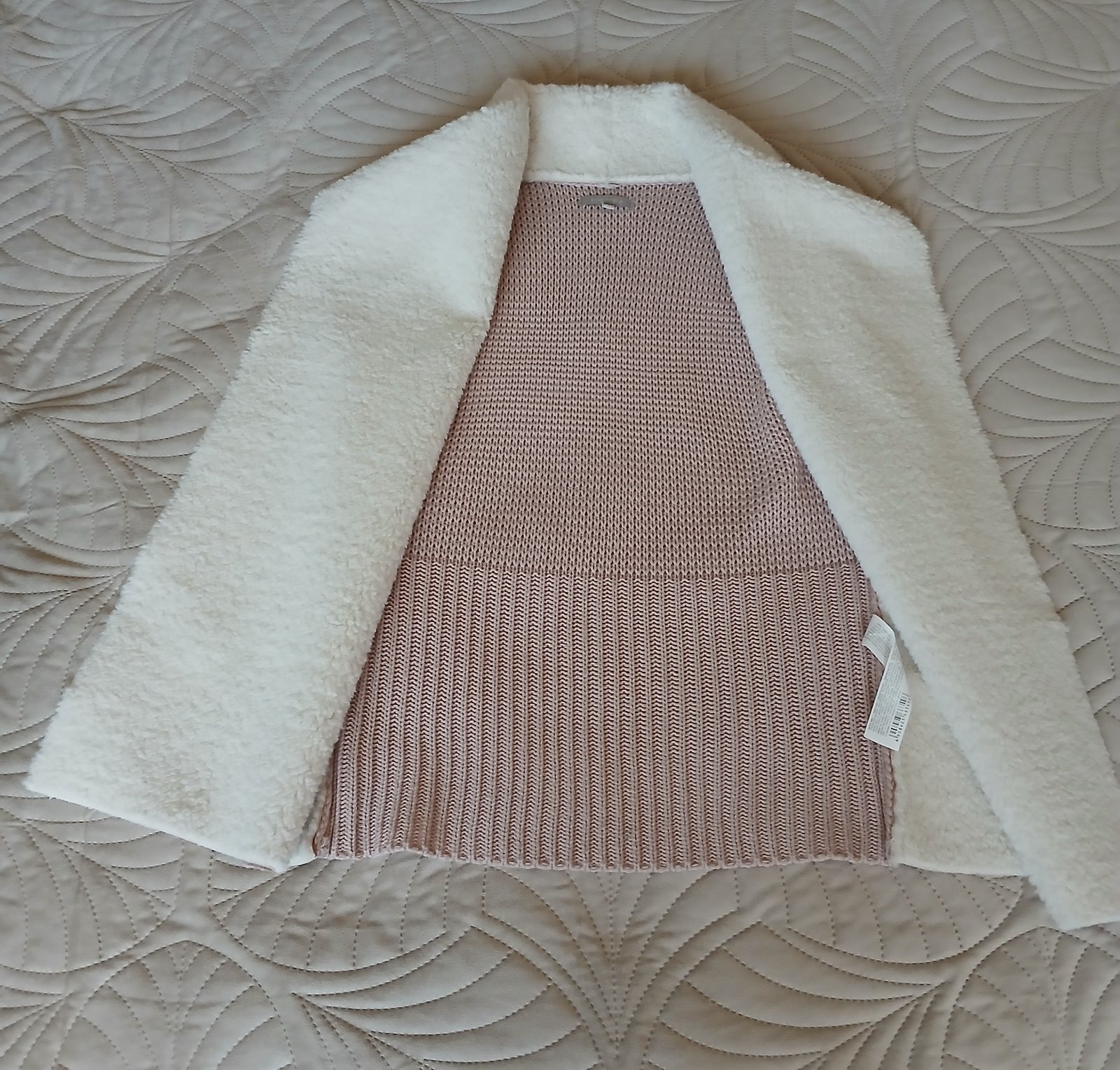 Kombinovaná vesta od Fisherfield vo veľkosti 34.Dĺžka 62 cm,bez zapínania.Materiál akryl a polyester.