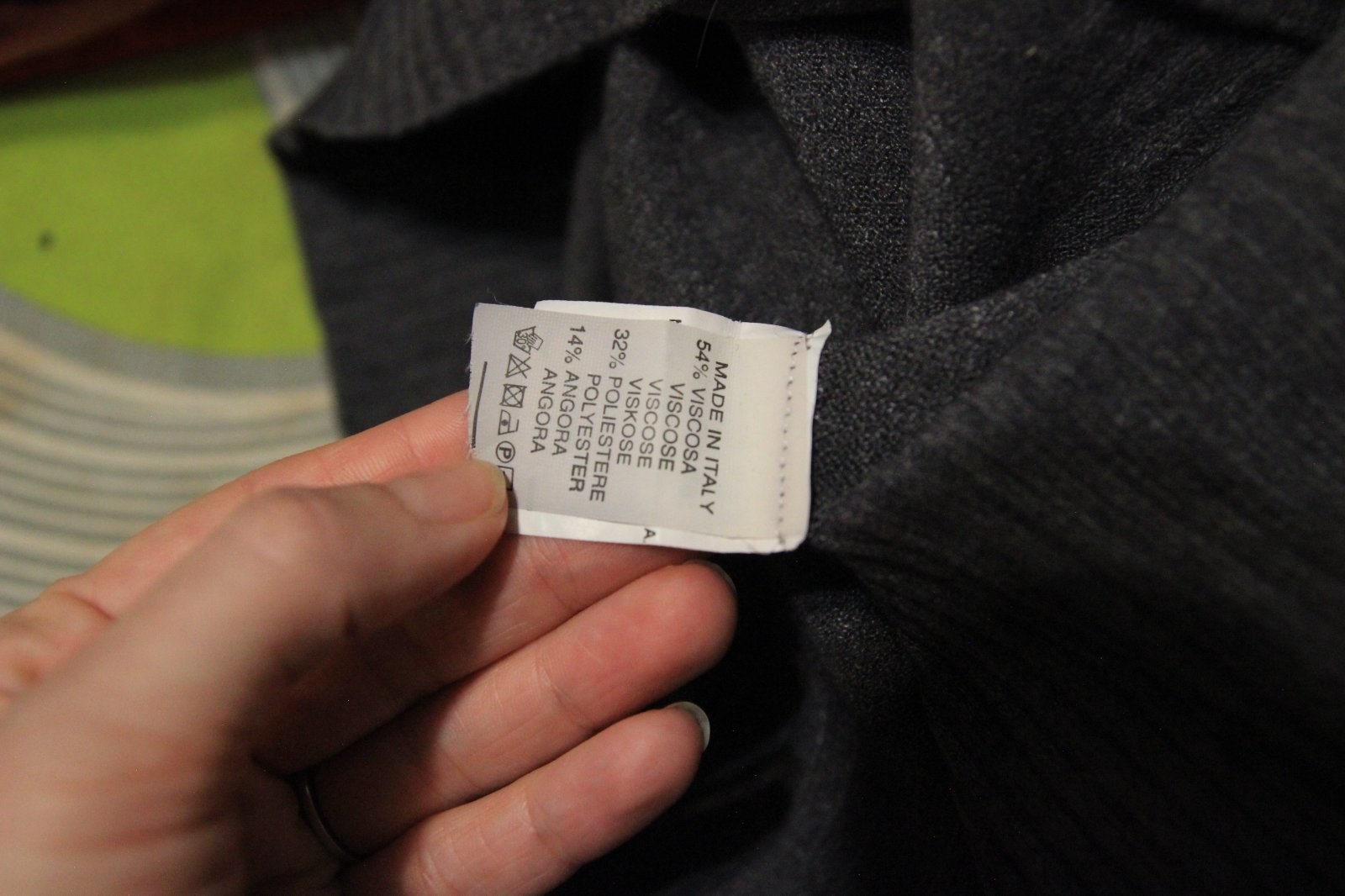 Tmavo šedý pletený sveter, obsahuje 14% vlny. Veľkosť L. Top stav. Made in Italy. Oversize strih.