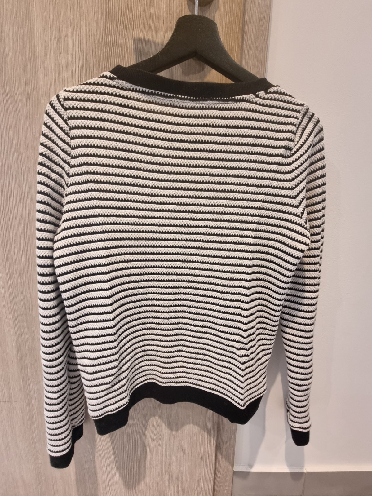 Super svetrik, zapínanie na háčiky, bez poškodení, veľkosť píše 40, ale je to skôr M. rozmery: šírka: 48 cm, dĺžka: 58 cm