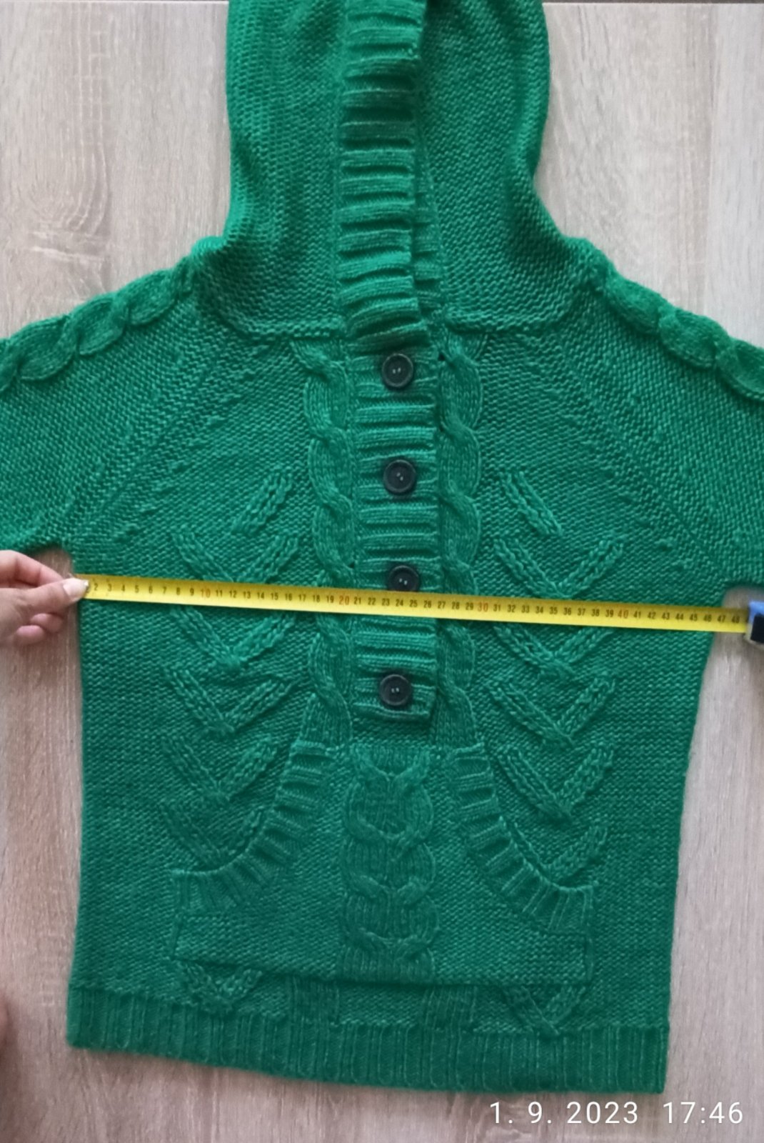 V inzeráte je uvedená veľkosť, prípadne miery, ďalšie merania, či fotky, ako vyzerá oblečenie na postave neposkytujem z časových dôvodov a ani nereagujem na takéto správy.