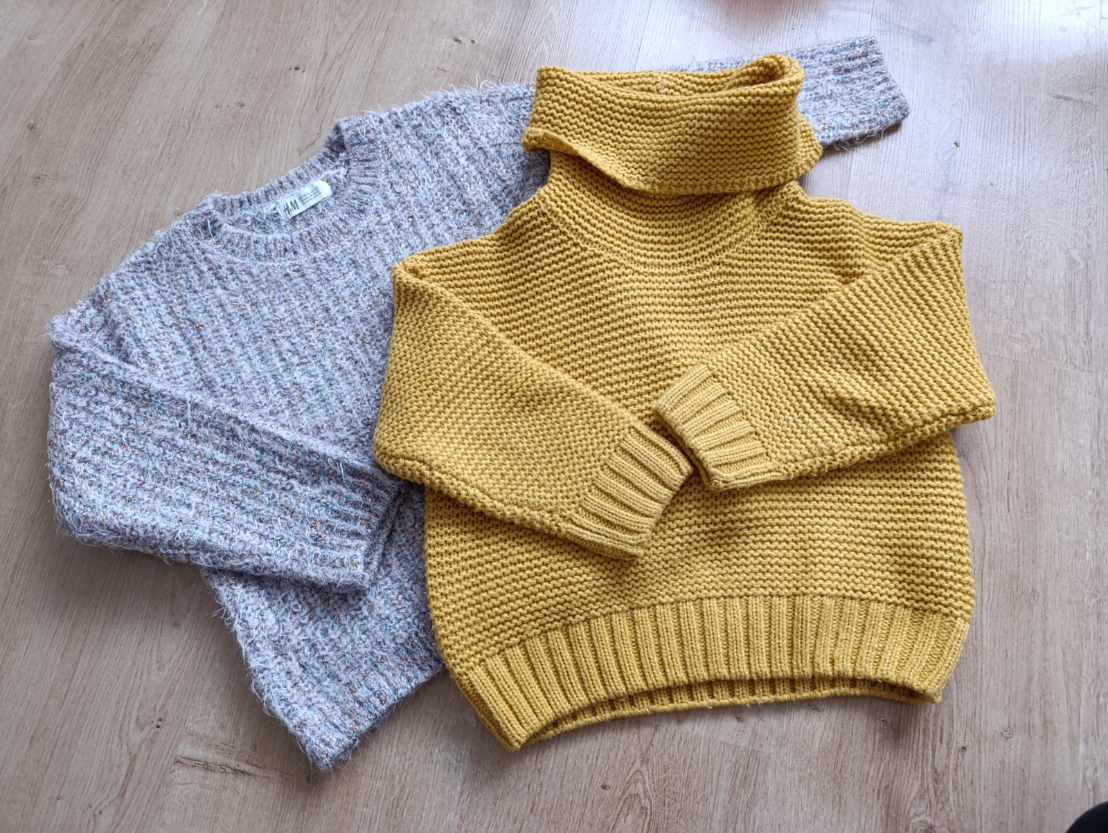 Rolák značky reserved, svetrík s trblietavou niťou h&m, veľkostne rovnaké, veľkosť cca 116. Cena za kus 4€, spolu 7€.