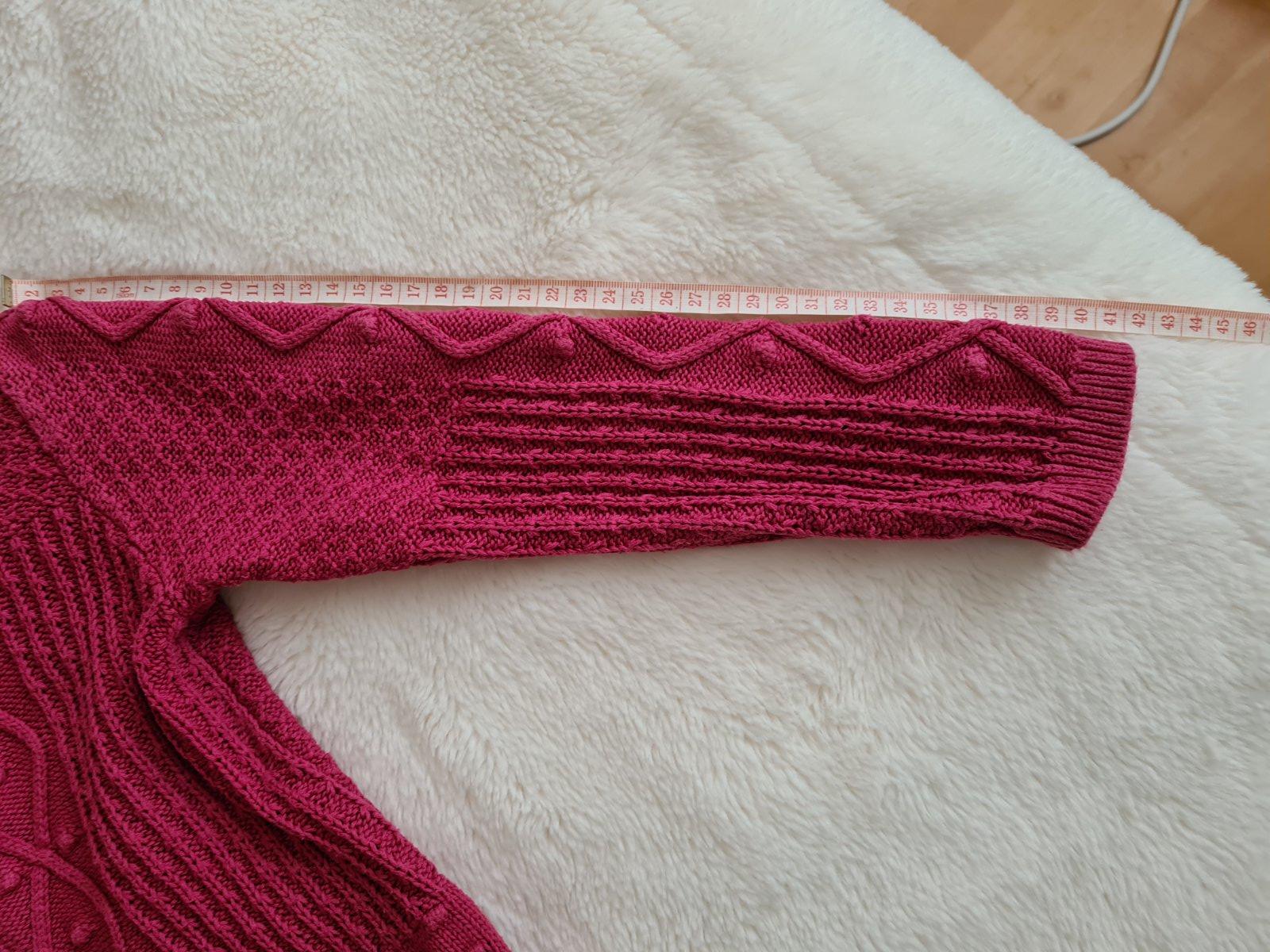 Krasny chlpaty pulovrik vo velmi dobrom stave. Velkost je uvedena ako 98, ale je vacsi. ROZMERY: dlzka rukavu od krku: 45cm, rukav od pleca: 38cm, celkova dlzka od pleca: 41cm, sirka pod pazuskami:...
