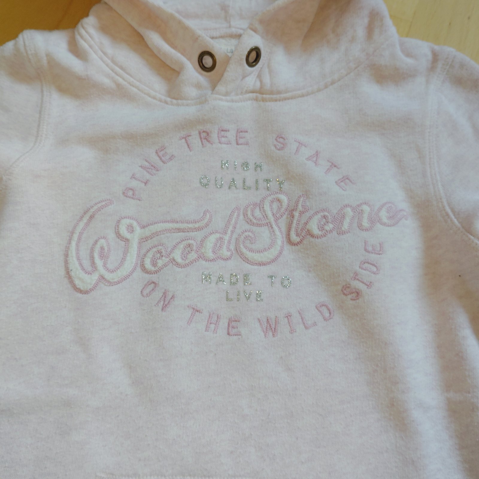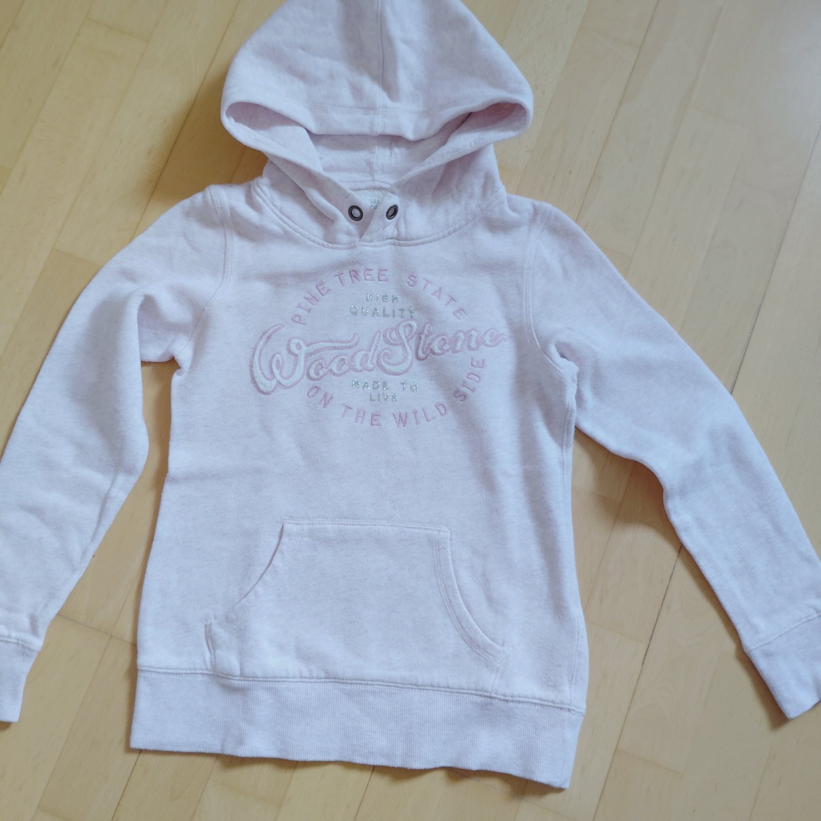 Predám peknú nosenú mikinu s perličkami, drobné chybičky, jedna perlička prišitá a pri druhej minidierka, viď foto.