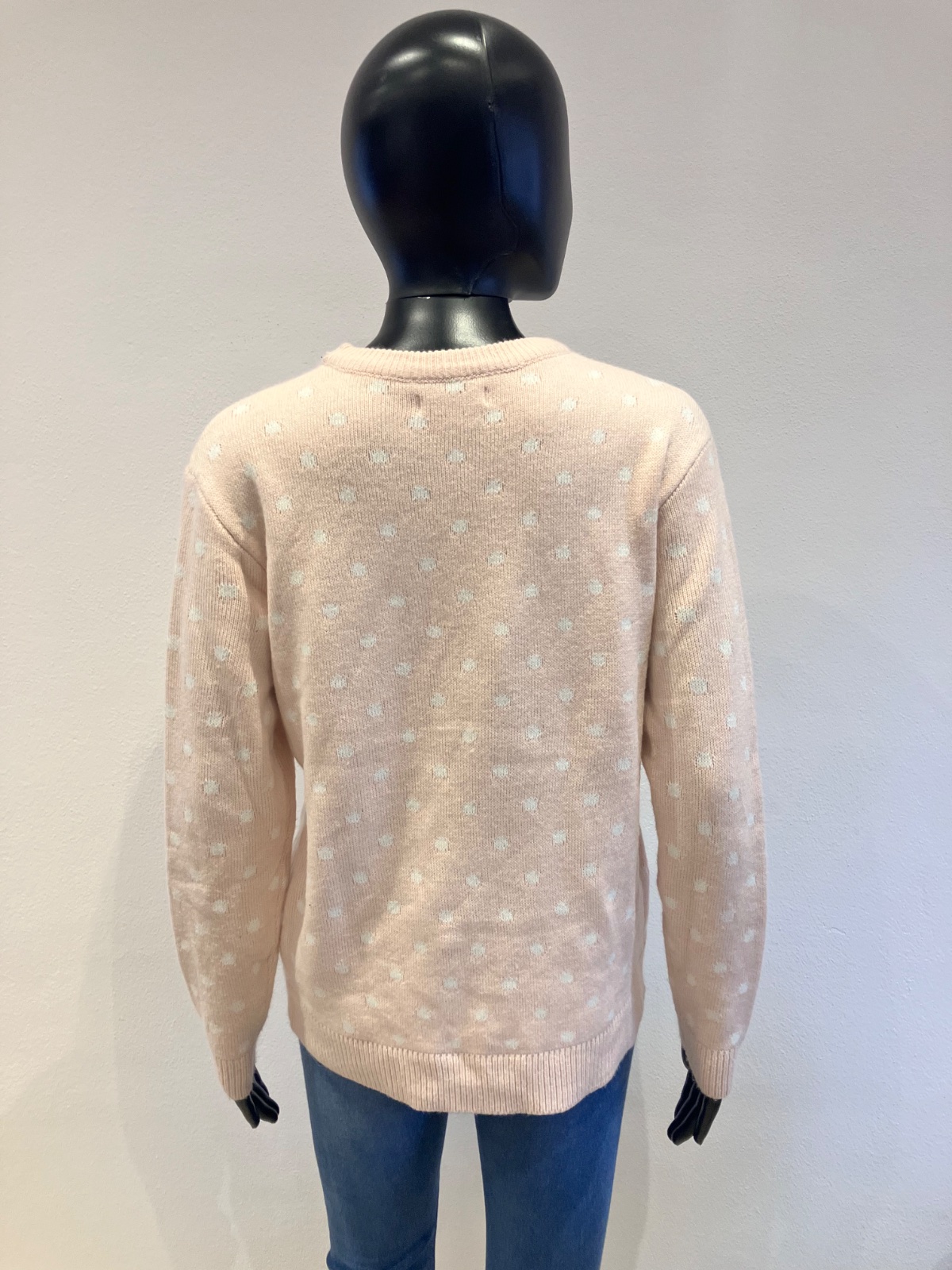 Dámsky huňatý sveter, predĺžený, hrubší, bodkovaný so vzorom, elastický, okrúhly výstrih, materiál 95%acryl 5%polyamid.