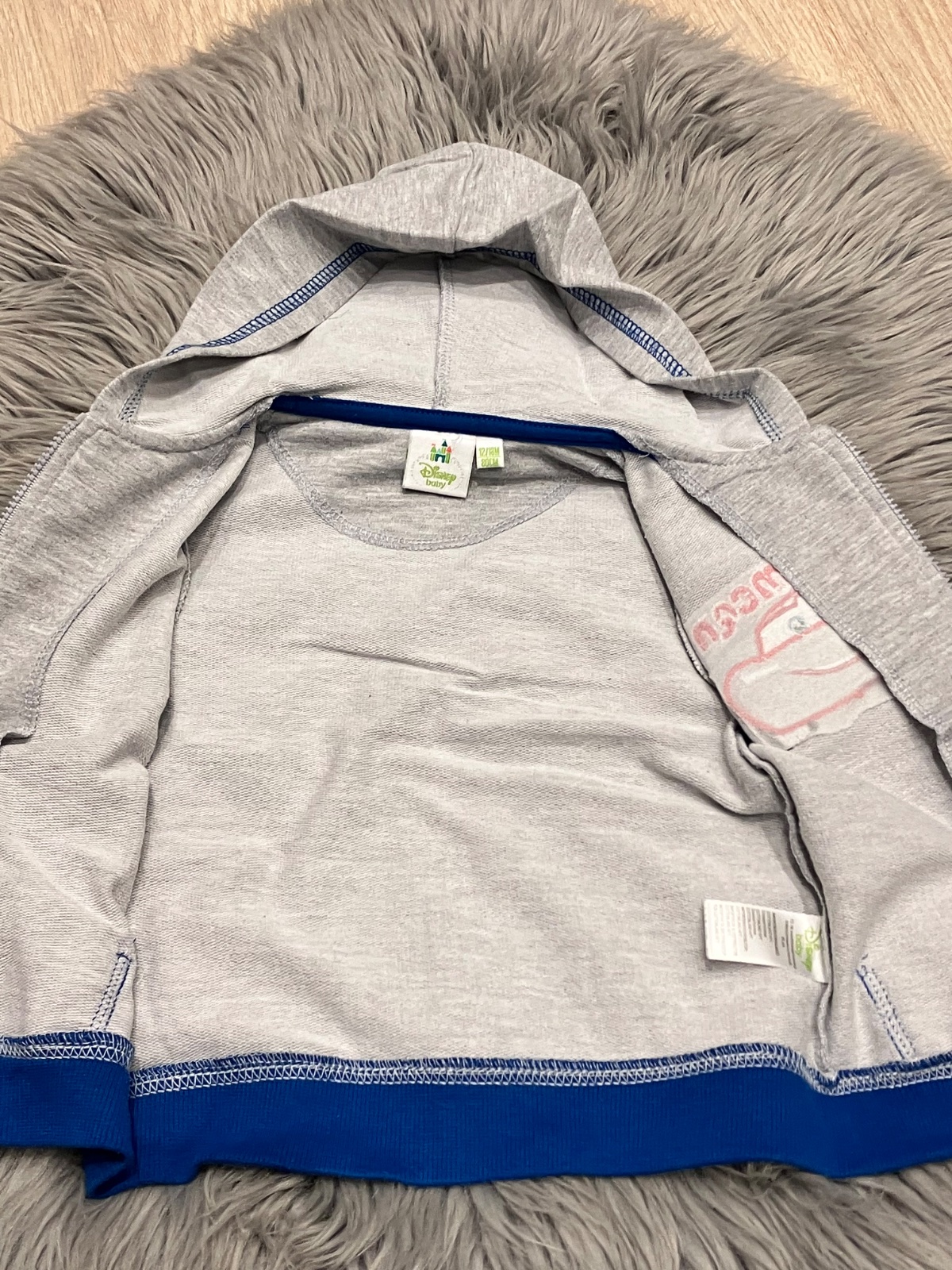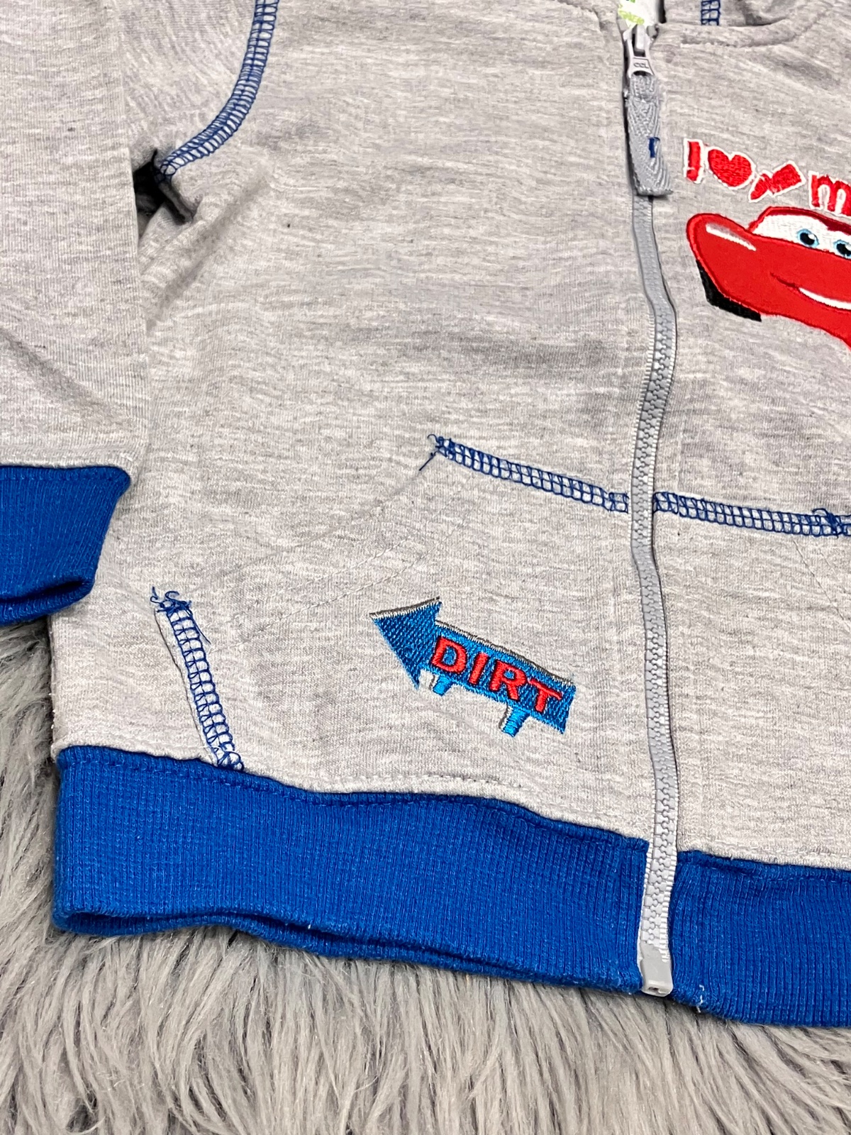 Chlapčenská mikina s kapucňou, s vyšívaným vzorom Cars, tenká, jemne elastická, zapínanie na zips, materiál 65%polyester 35%bavlna.