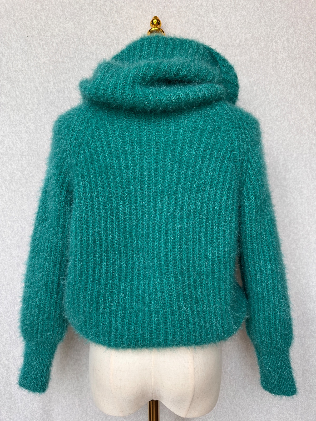 Príjemný rolák v smrekovej zelenej farbe. V super stave, bez poškodení. Materiál je ľahký, nadýchaný, nežmolkavie sa, nechlpí. Materiálová vísačka už nie je k dispozícii.