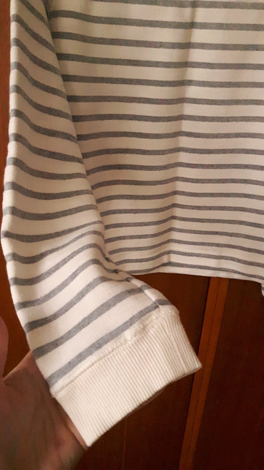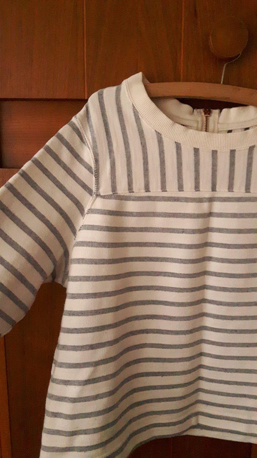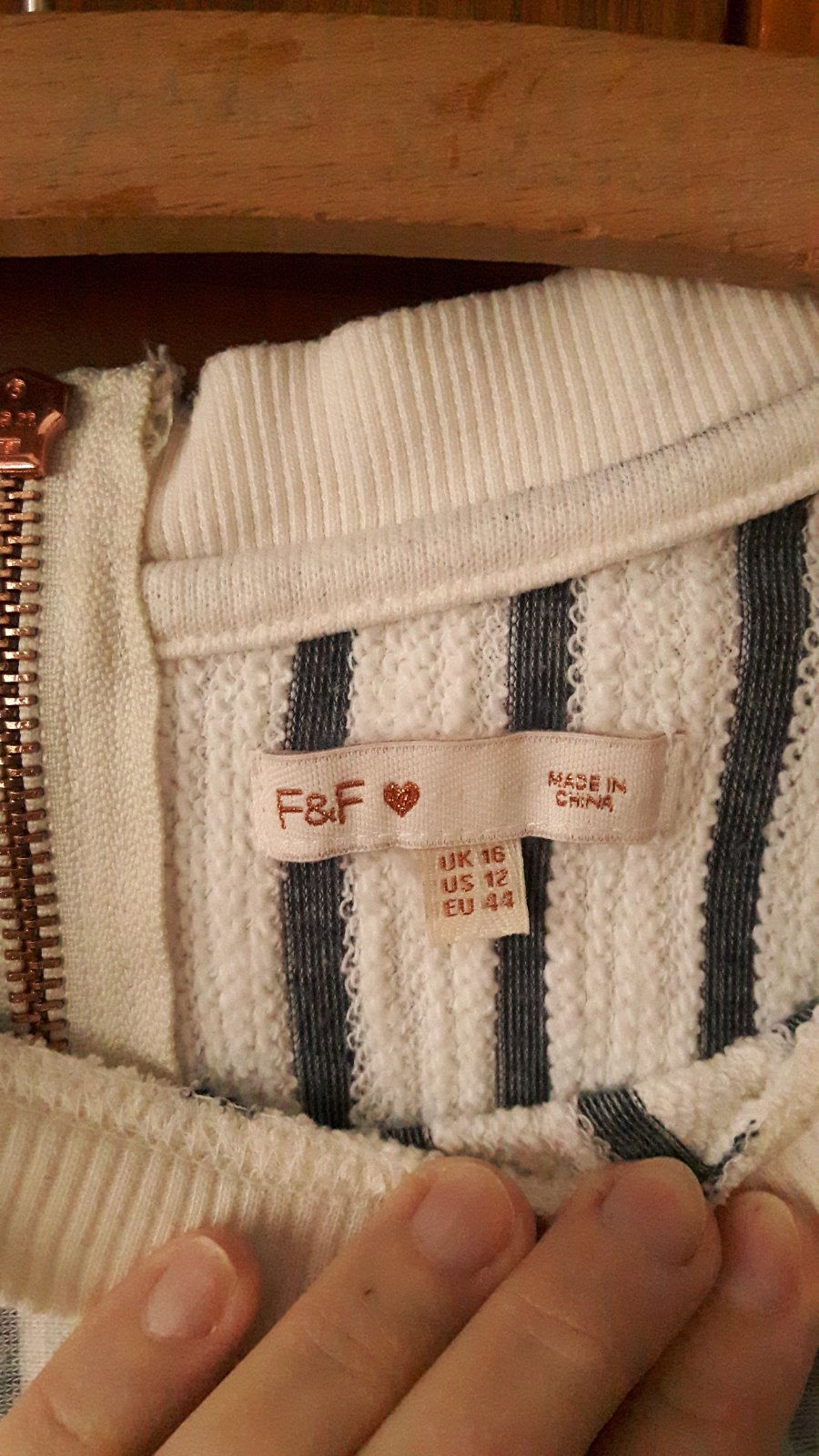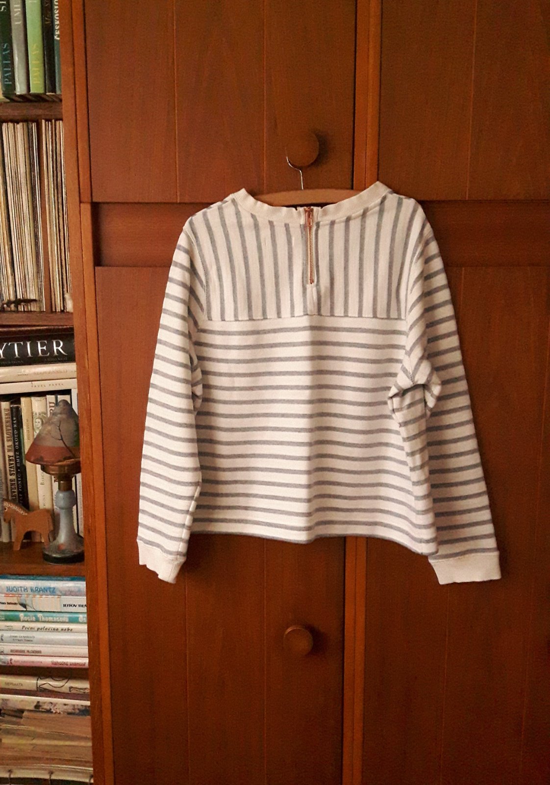 Pekná biela mikina/pulóver so šedým pásikom z úpletu, vzadu má malý zips - viď foto. Značka FF, veľkosť je udaná 44, ale je to skôr univerzálny strih/oversize a kľudne veľkosť M alebo L, sa v nej bude cítiť dobre:)! Málo nosená! Dĺžka 52 cm a šírka (meraná pod pazuchami): 55 cm.