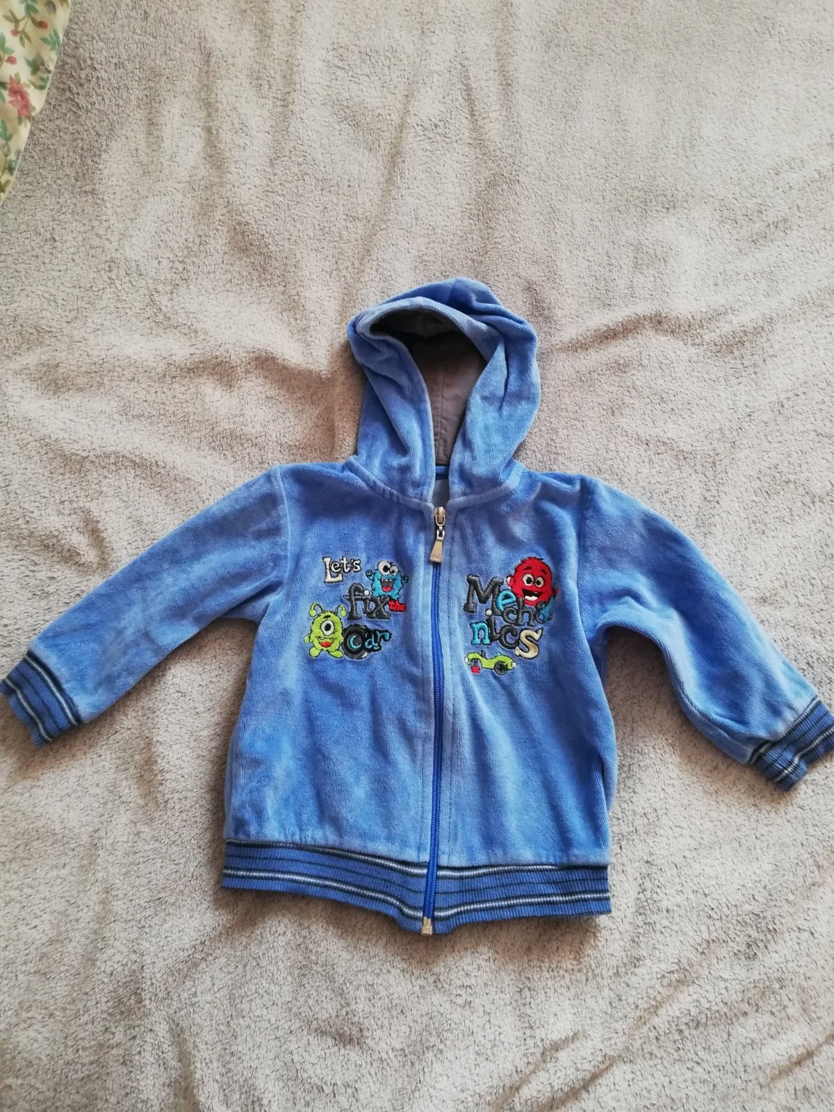 Mikina asi 2 krát oblečená. Na potlači sú malé lienky. Rozmery sú dĺžka 68 cm, šírka je 57 cm rukáv od goliera nadol je 76cm.