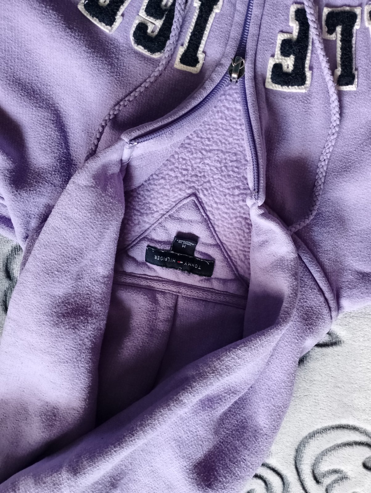 Nosená mikina s kapucňou značky Tommy Hilfiger, veľkosť M, hrubší materiál. Má na sebe jemne zmolky a chýba ťaháčik na zipse inak je zips funkčný.