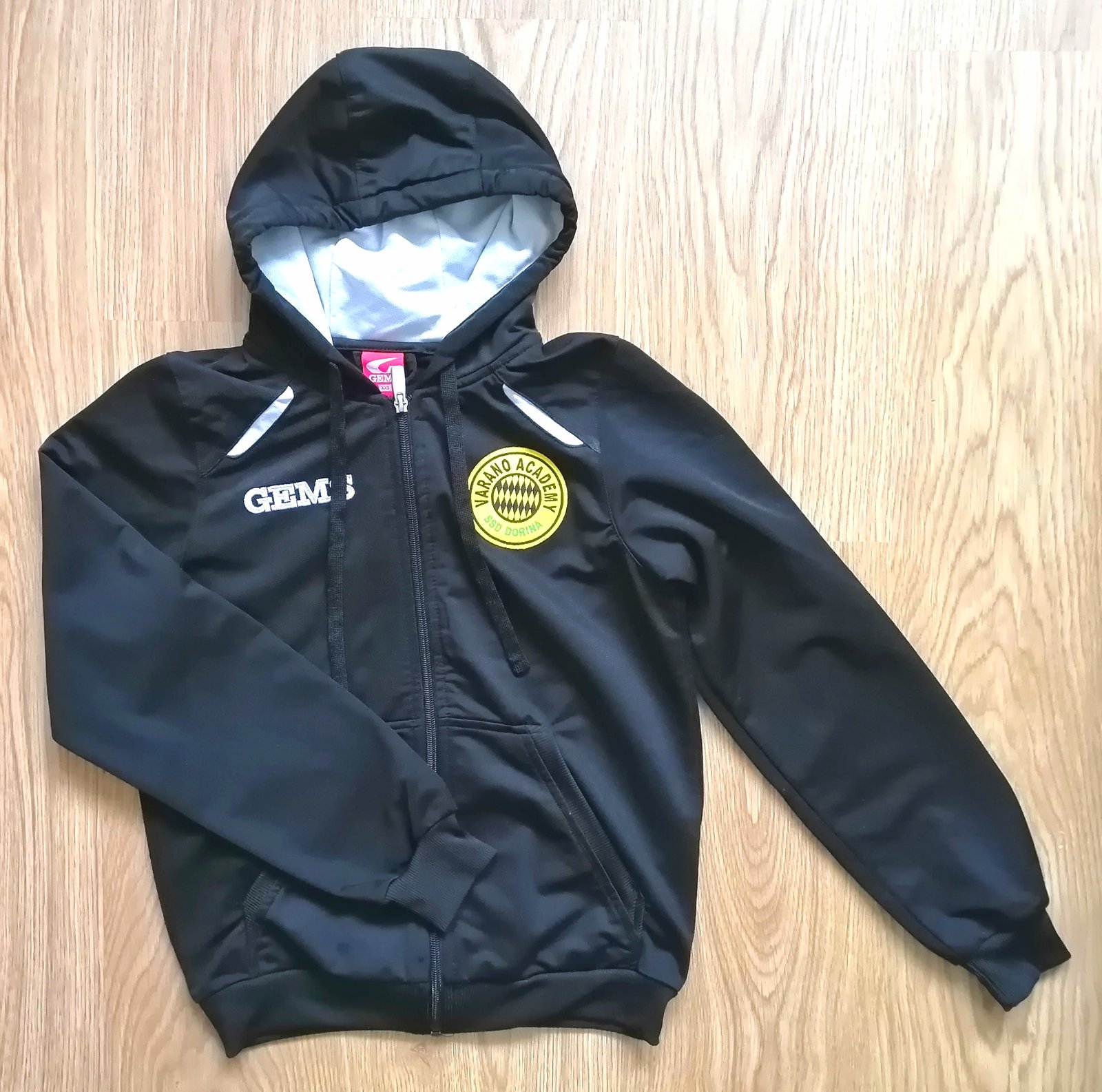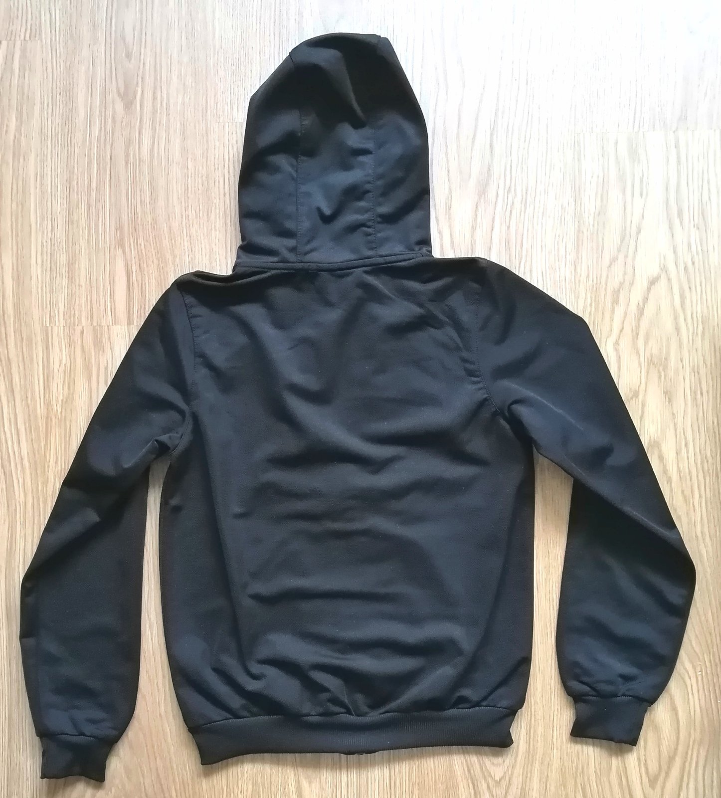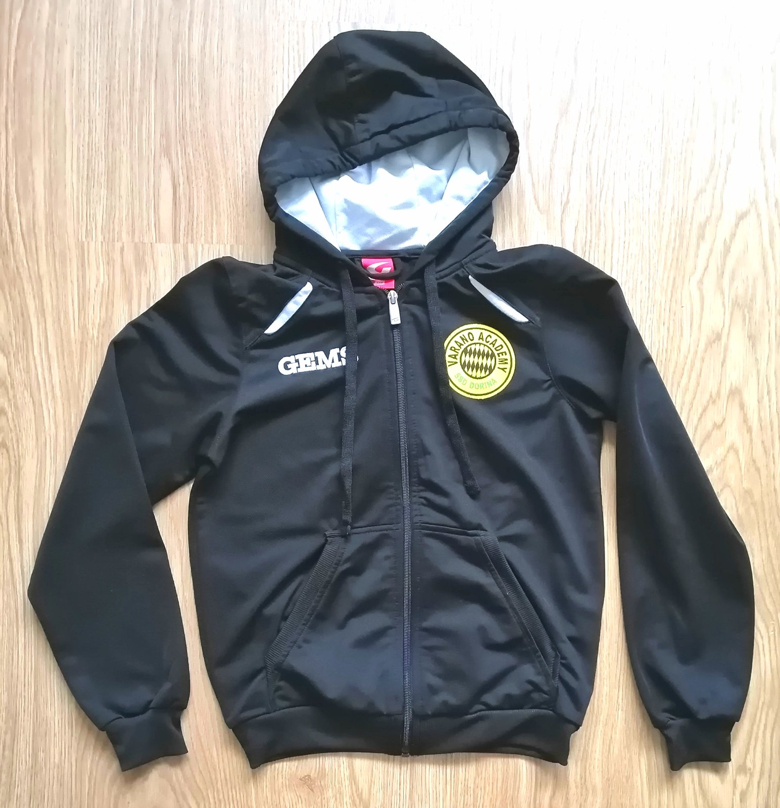 Chlapčenská funkčná mikina na šport, čierna farba, s podšitou kapuckou, zapínanie na zips, dve funkčné vrecká.