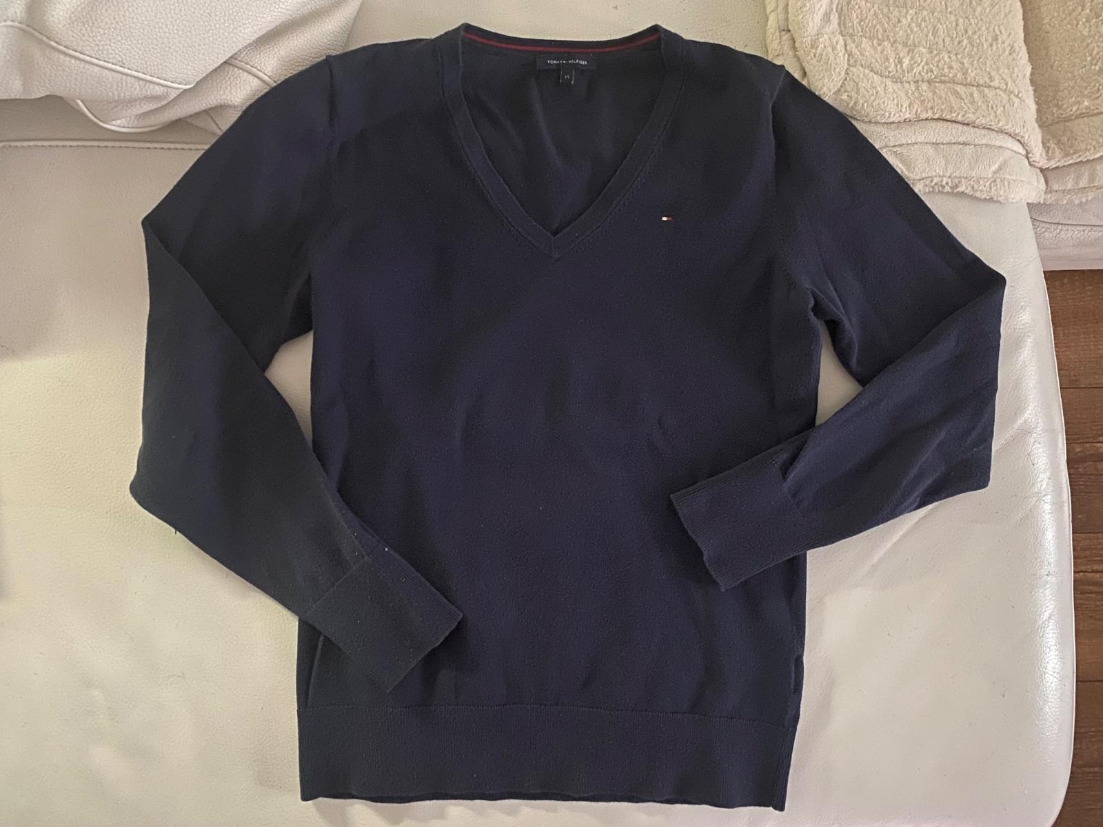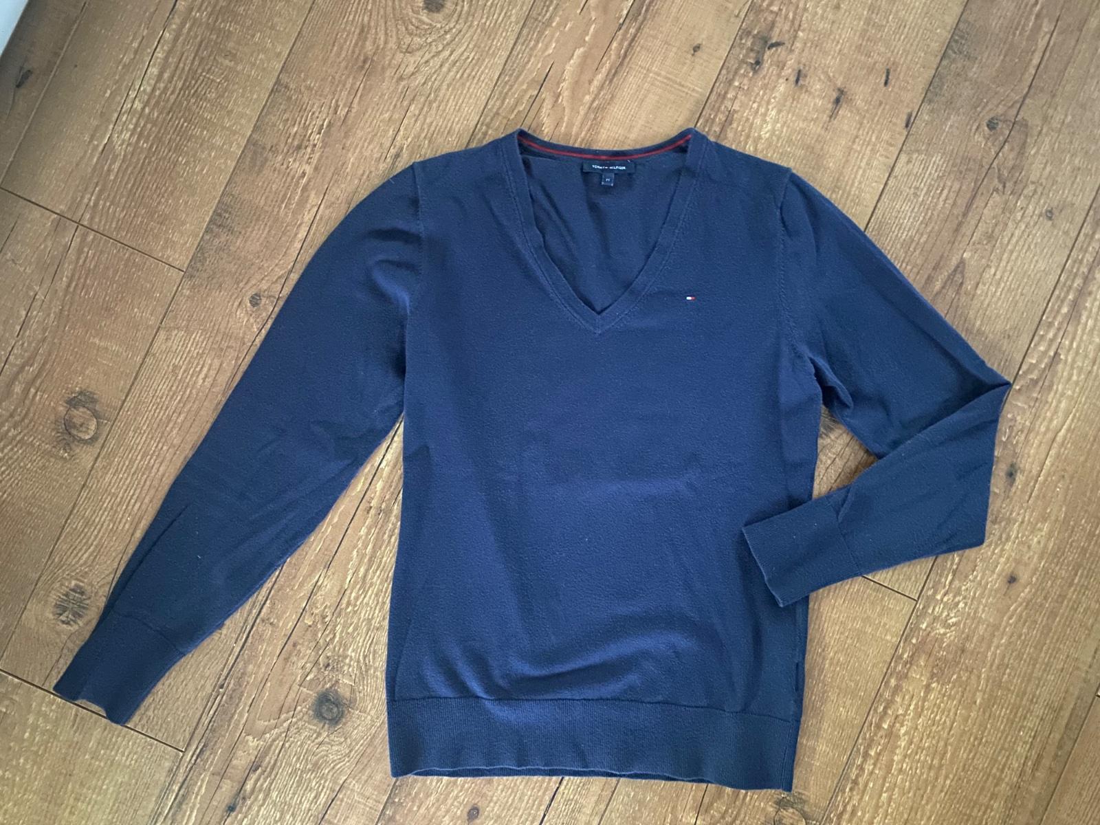 Tmavomodrý svetri tommy Hilfiger športovo elegantný, vecko y výstrih nie príliš hlboký super k polokoseli (mam jednu v albume na darovanie treba potrieť aktuálnosť) k rifluam aj ako elegantný …je to damske cislo, sedí na Xs-S taká 36 ideálne, kludne aj pre veľkú slečnu. Mala som ho iba pár krat nie je vyblednuy. Kúpený v RL predajni je originál. Poštovné podľa posty.