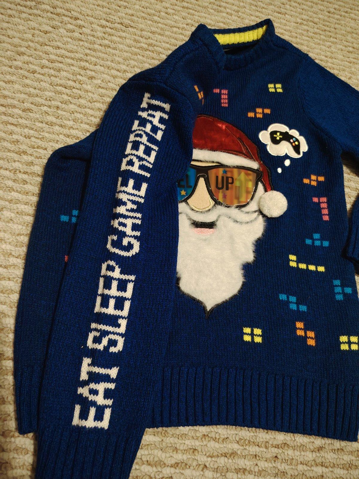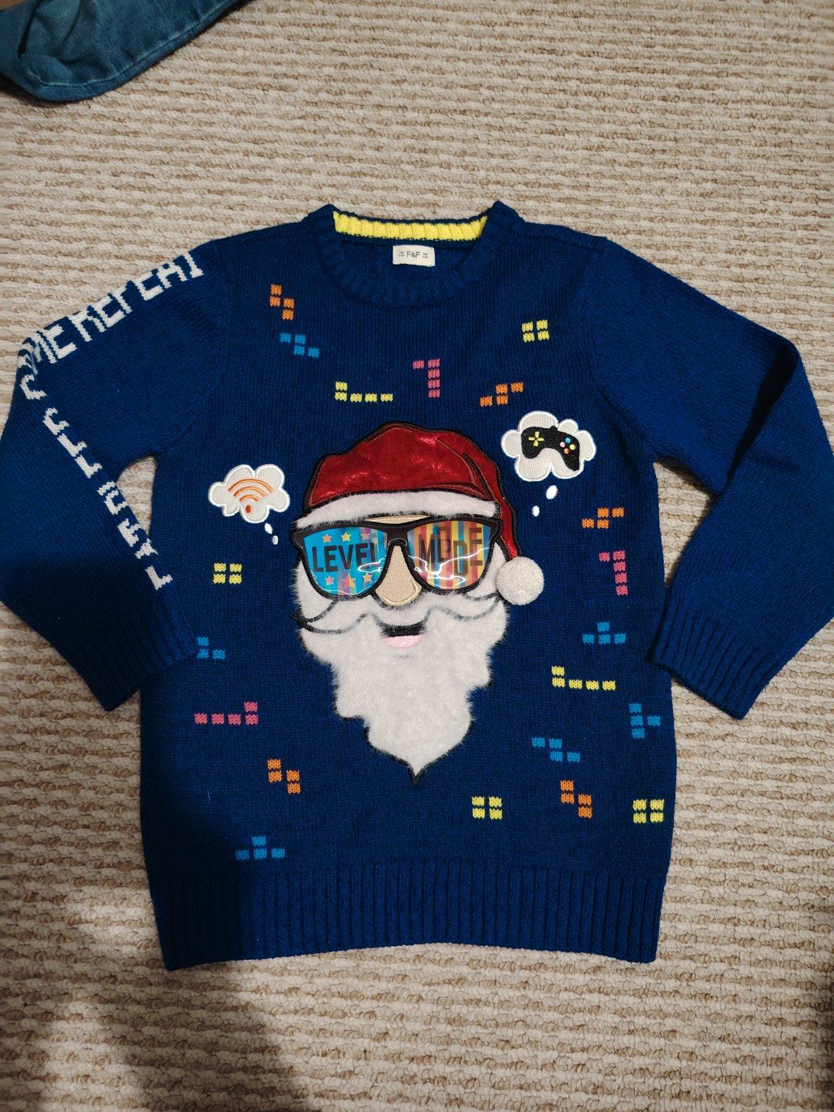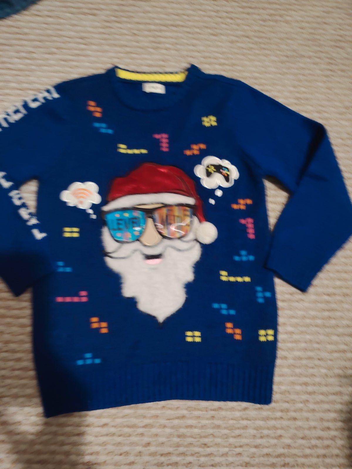 Pekný noseny kúsok bez akýchkoľvek poškodení , zabavna aplikácia Mikuláša určite nejakého fešáka poteší veľkosť 7-8 rokov , 128