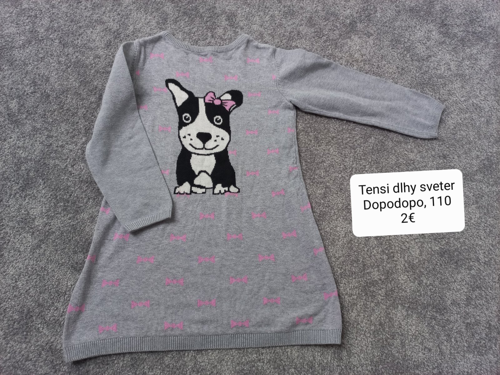 Predam dlhsi svetrik, znacka Dopodopo, velkost 110, ma trosku minizmolky z prania, nie je velmi vidno.
