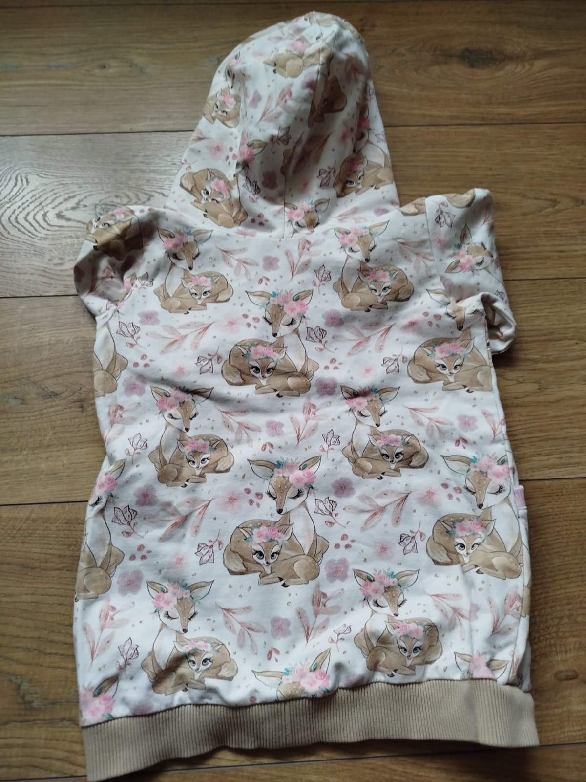 Na predaj nosená handmade šitá mikina. Veľkosť odhad 128-134 záleží od postavy. Riaďte sa prosím rozmermi