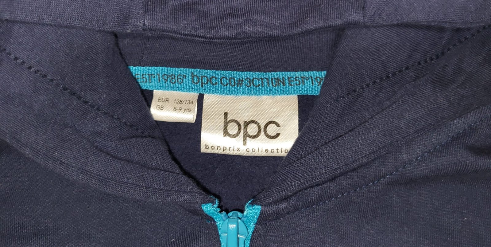 Krásna mikinka bez vád,farba trošku tmavšia, veľ.122/128, zvnútra jemné hlpky