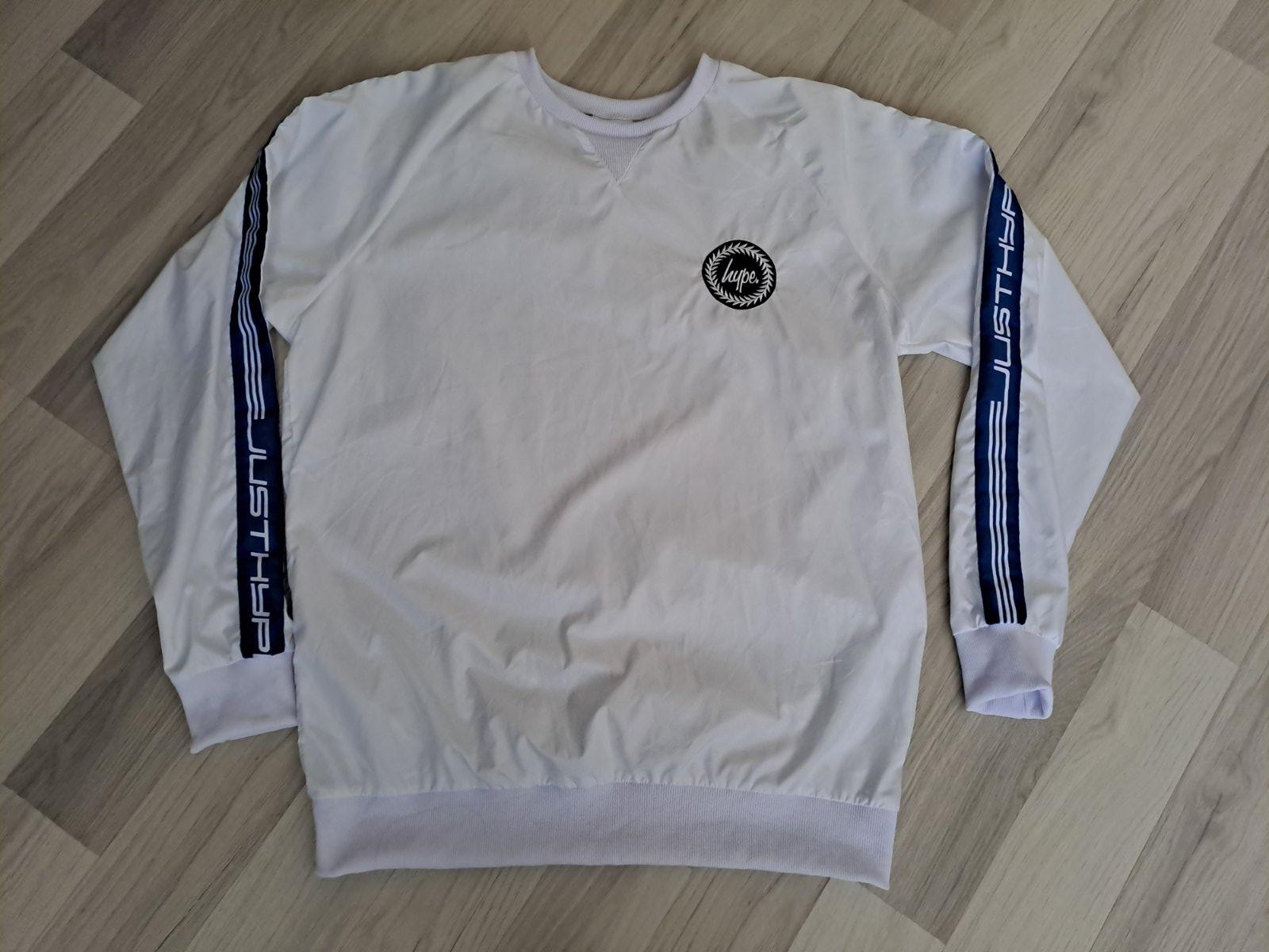 Krásna mikina, v 100% stave. Len opraná, nenosená. Super športovo-elegantný štýl. Vrchný biely materiál je hladký, akoby jemne lesklý - veeeľmi zaujímavý. Veľ. L