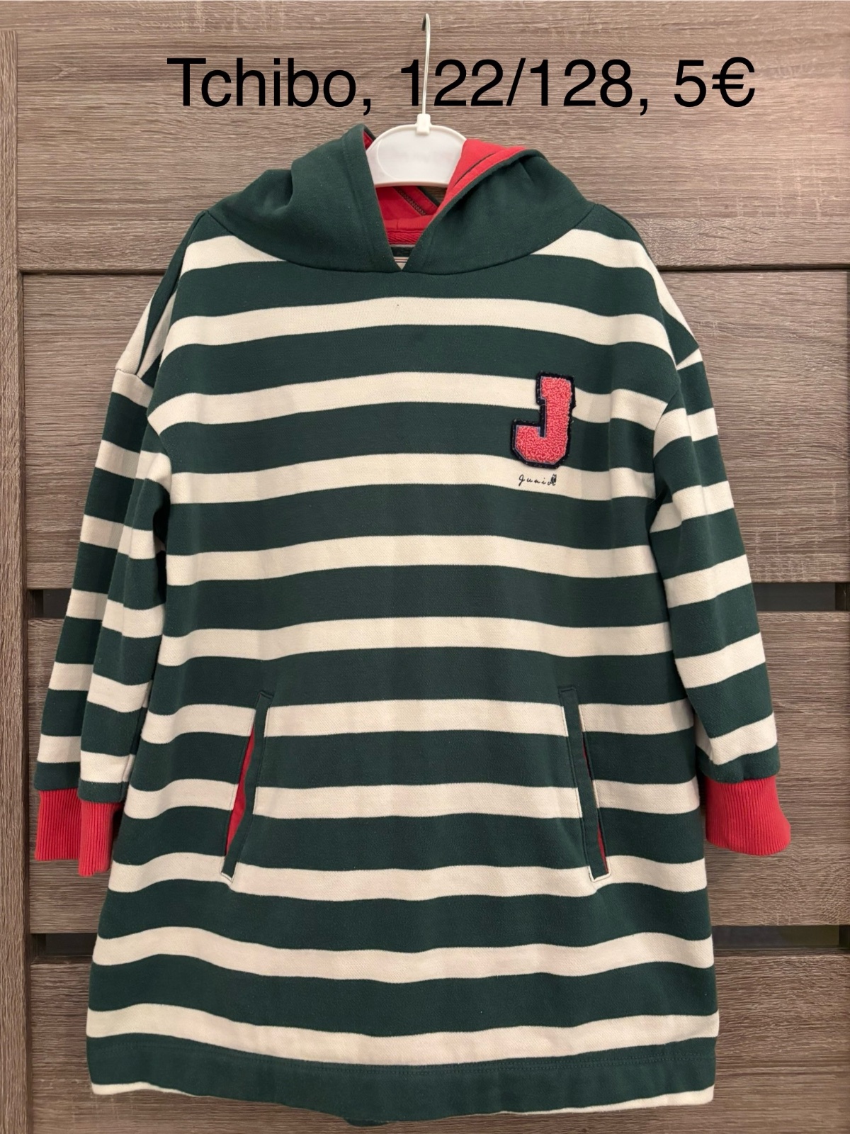 Nová predĺžená bavlnená mikina 122/128 na 6-8 rokov Tchibo. Mikina s padnutými rukávmi, 2 predné bočné vrecká, aplikácia z froté. Dĺžka 58 cm, šírka 43 cm, rukáv od pliecka 35 cm + 10,5 pliecko. No...