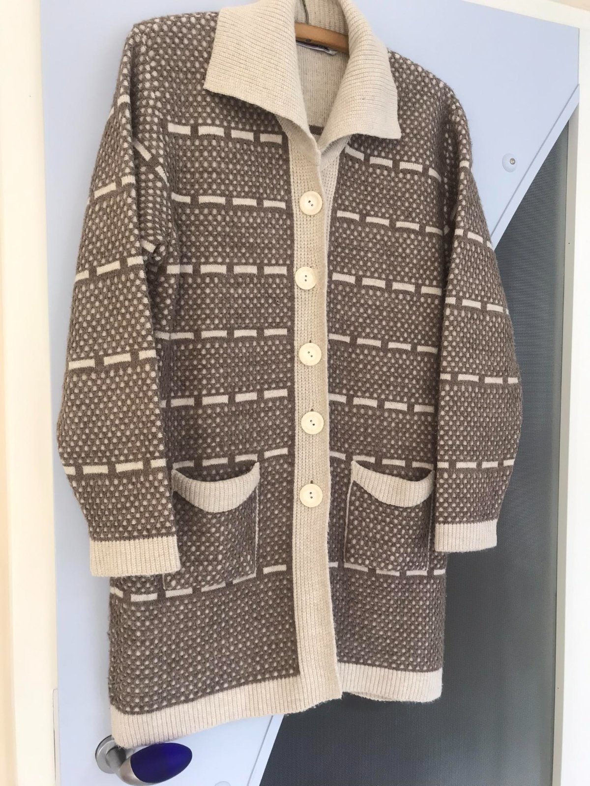 teplý neznosený dlhší sveter,dlžka = 90 cm,ramená = 15 cm,rukáv = 60 cm + 3 cm manžetka biela