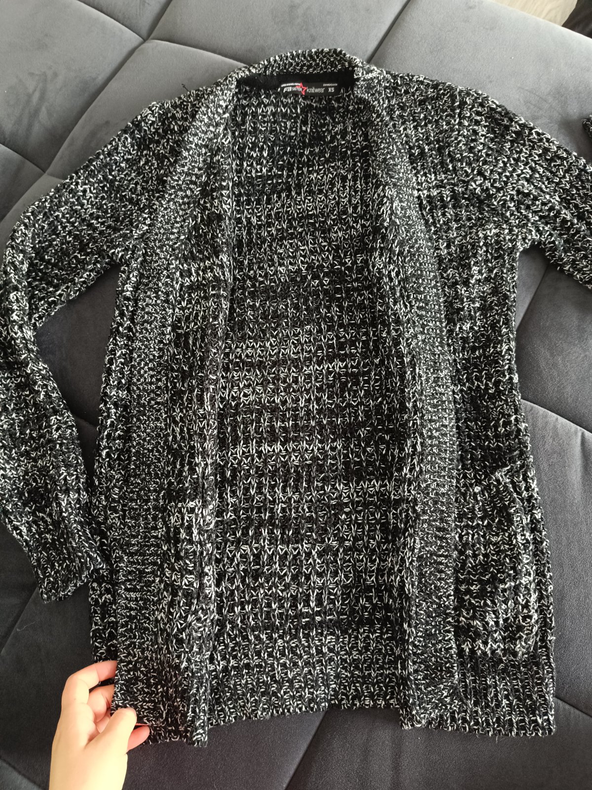 Teplý pletený štrikovaný strakatý sveter kardigan