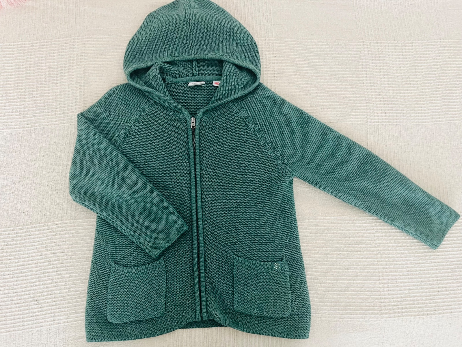 VYBORNY STAV - Kardigan na zips s kapucnou zn.ZARA, velkost 110, vo vybornom stave, bez flakov a dier, iba po mojom synovi, sem-tam nepatrny zmolcek ako na detailnych foto, idu vsak odzmolkovat, zohladnujem to v cene.