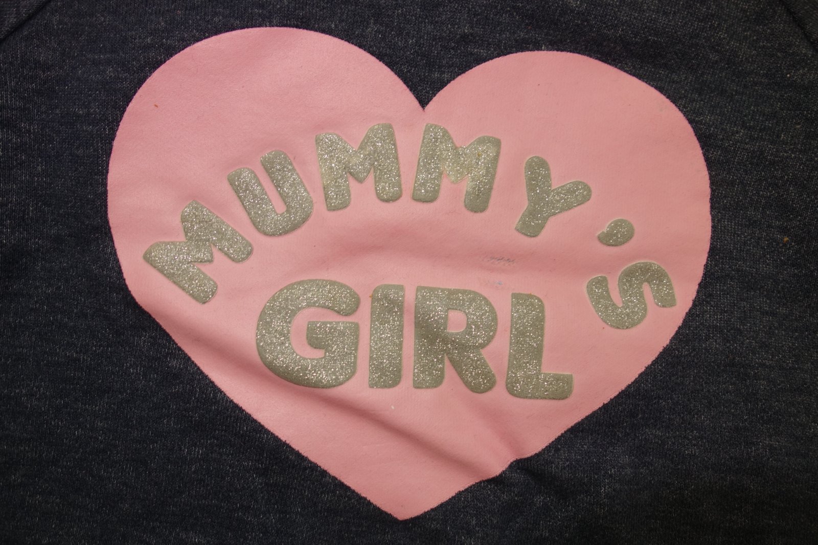Výborný stav. 60% bavlna, 40% polyester, bez žmolkov. Nápis je trblietavý a vypuklý.