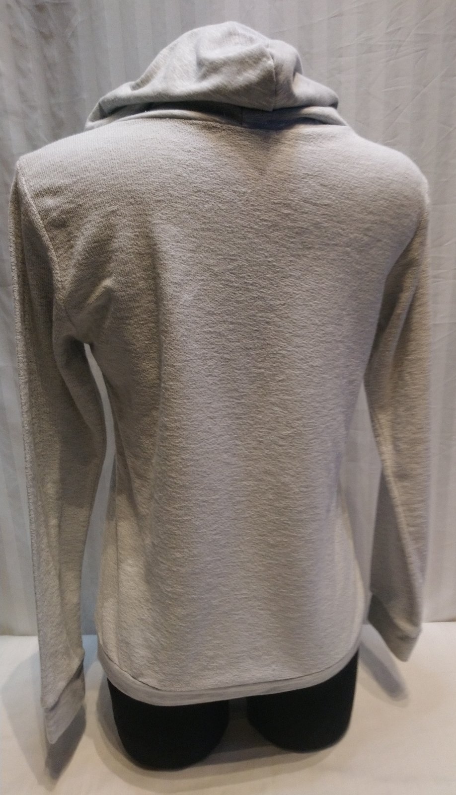 dámska sivá elastická mikina s kapucňou, strieborný motív,