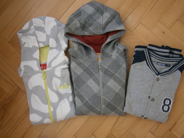 Puma veľ. 158 na zips, nosená, na jednom rukáve zozadu ružový fľak, nedá sa mi to nafotiť, dĺžka mikiny 60 cm, parádu narobí, cena 2 eur + pošta.