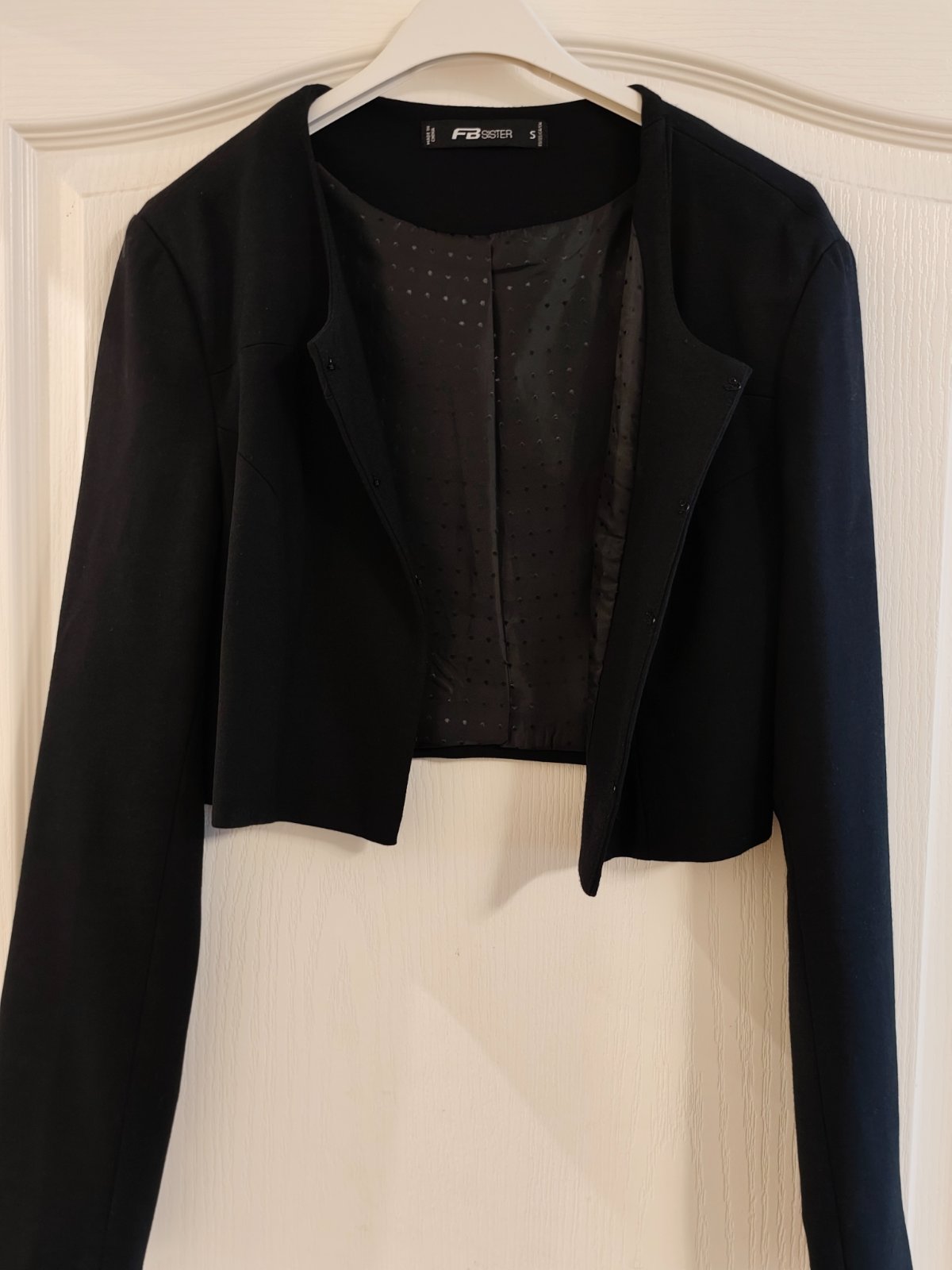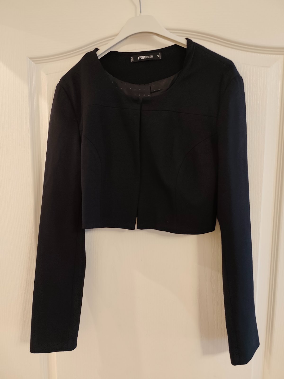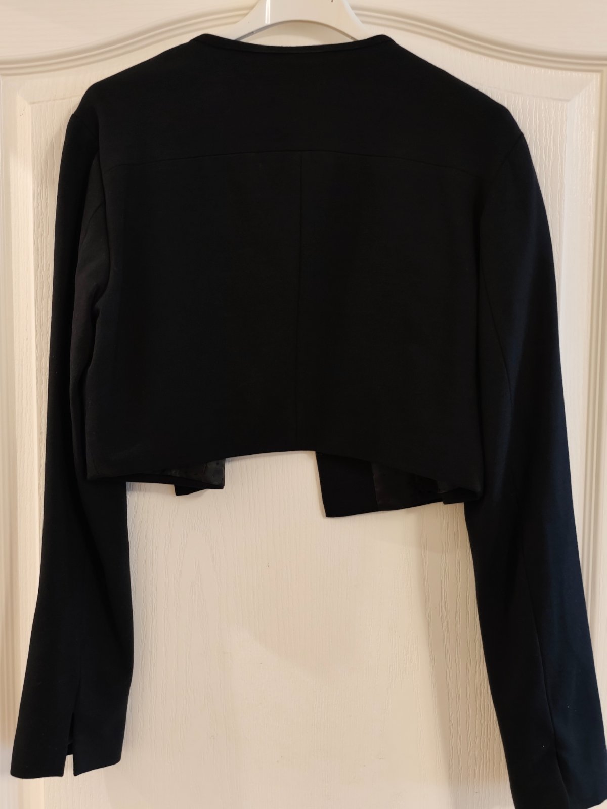 Predám čierne hrubšie bolerko. Veľkosť S, ale sadne aj na M. Možnosť nosiť voľne, alebo sa dá zapnúť na 4 háčikmi. Bez poškodení.