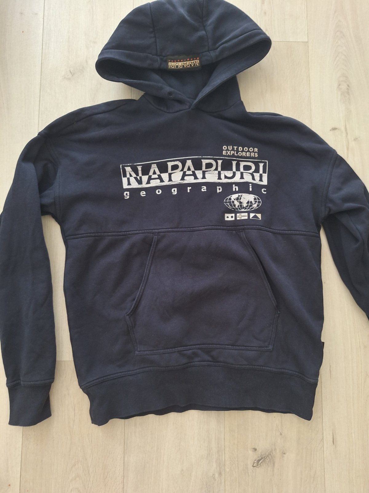 Napapijri mikina len opratá, nenosena, šnúrky v kapuci neboli.