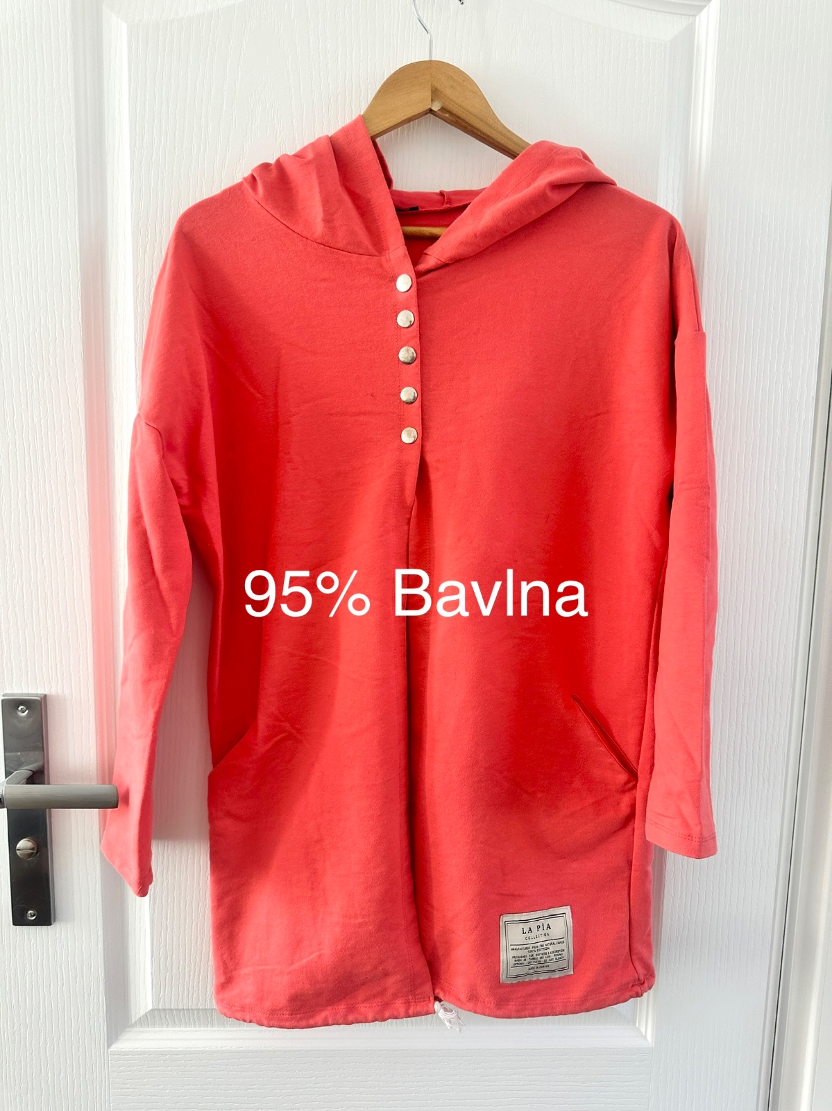 Štýlová a neuveriteľne pohodlná dlhá dámska mikina v koralovom prevedení v štýle tuniky. Ideálna pre tie, ktoré si cenia pohodlie v kombinácii s módnym mestským štýlom. Mikina má dlhší (tunikový) strih, ktorý sa perfektne hodí k legínam alebo priliehavým nohaviciam. Štýlové strieborné gombíky (cvočky) vpredu umožňujú nastaviteľný výstrih. K dispozícii je aj veľká, pohodlná kapucňa, ktorá chráni pred chladom. Dve praktické vrecká po stranách. Ozdobná nášivka s logom značky v spodnej časti mikiny a nastaviteľný lem so šnúrkou umožňujú prispôsobenie strihu. Mikina je vyrobená z kvalitného úpletu s prevahou prírodných vlákien: