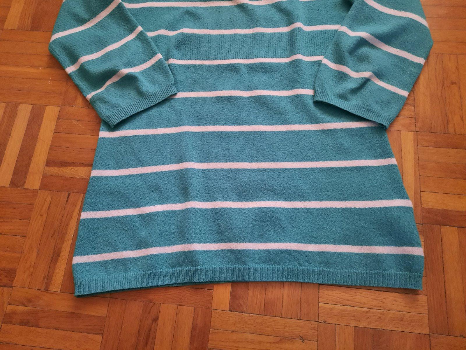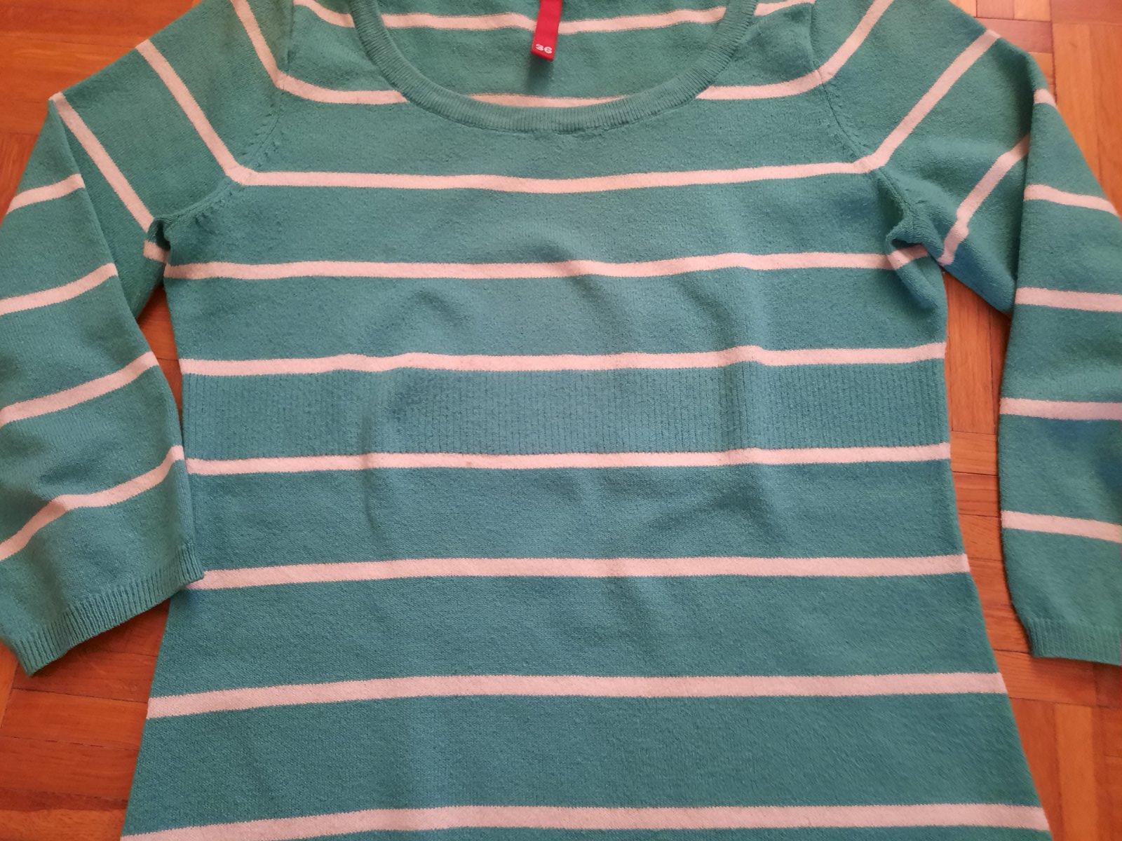 Predám pekný elastický pásikavý pulóver bez poškodenia. Rukávy sú 3/4. Farba je zaujímavá zelená.