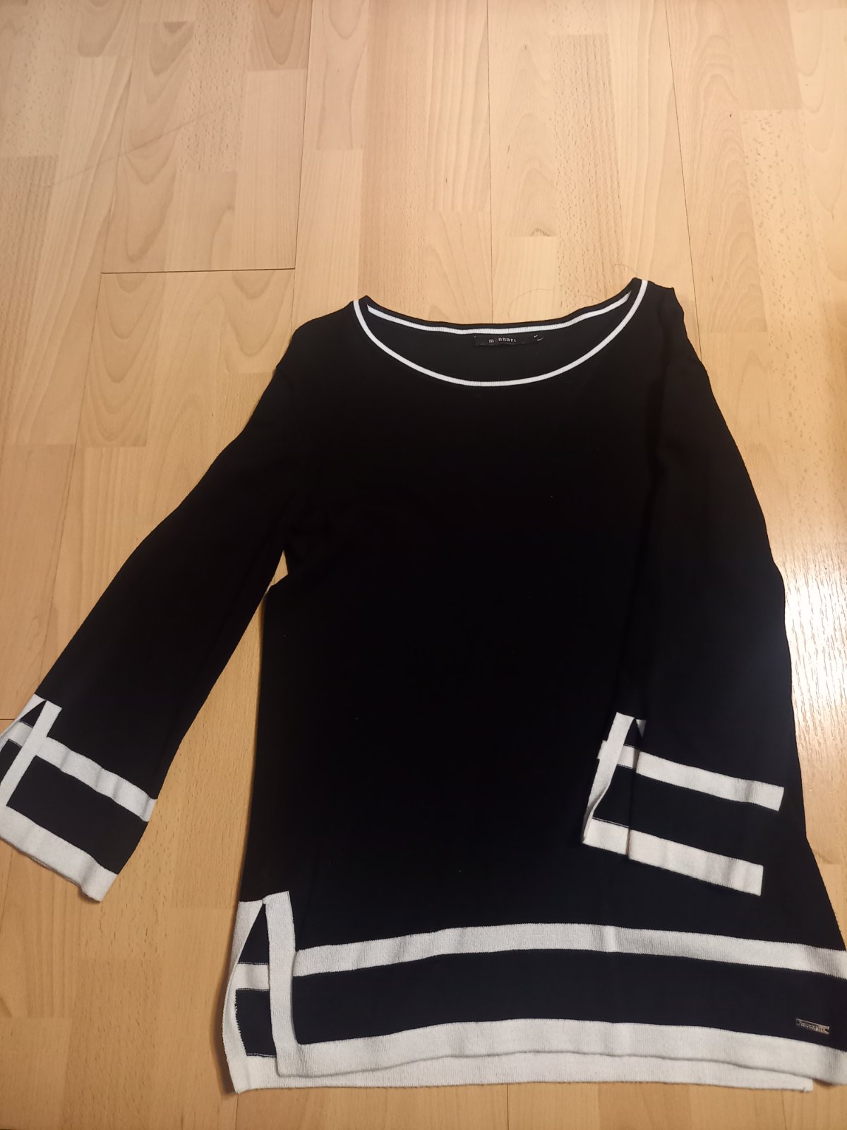Predám sveter s kapucňou, ktorý nebol ani raz oblečený. Chrbát svetra a rukávy sú čierne, predná časť je bielo-čierno-fialová. Je na zips, pôsobí veľmi mladistvo. Rozmery šírka - 42, dĺžka 54.