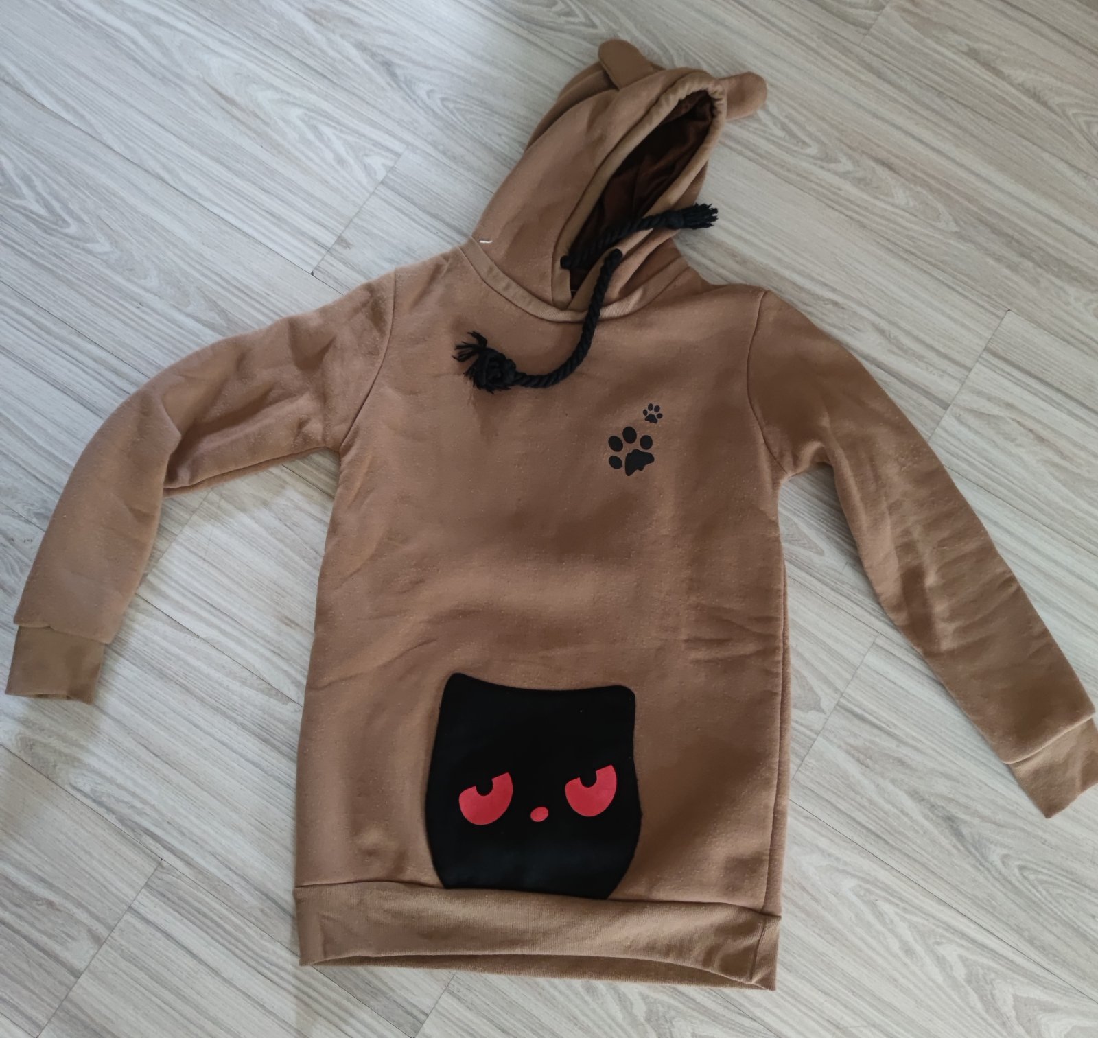 Na predaj macacia mikina, je velmi teplaz vnutra.Velkost nesedi,preto na fotkach su rozmery.Mini zmolky,inak nepiskodena..