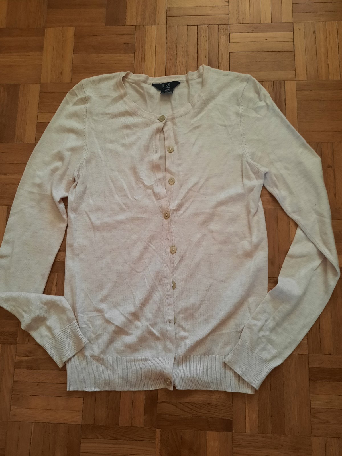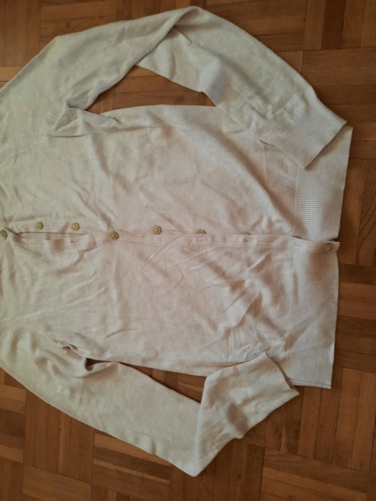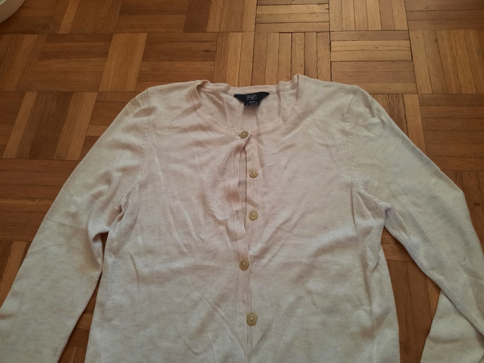 Pekný svetrík so zapínaním na gombíky vo výbornom stave. Farba je jemná ružovo-béžová. Vhodný aj pre mladé slečny.