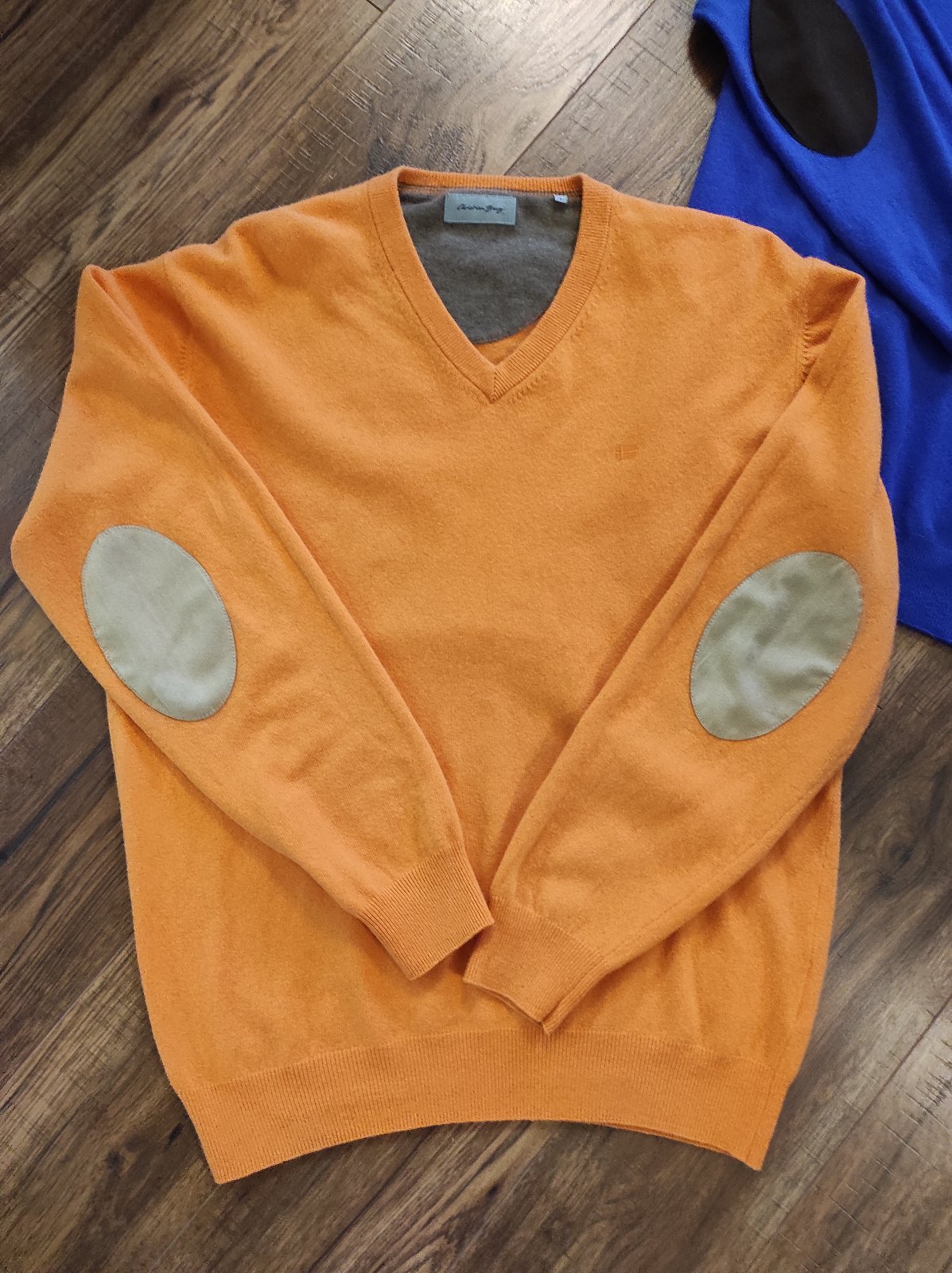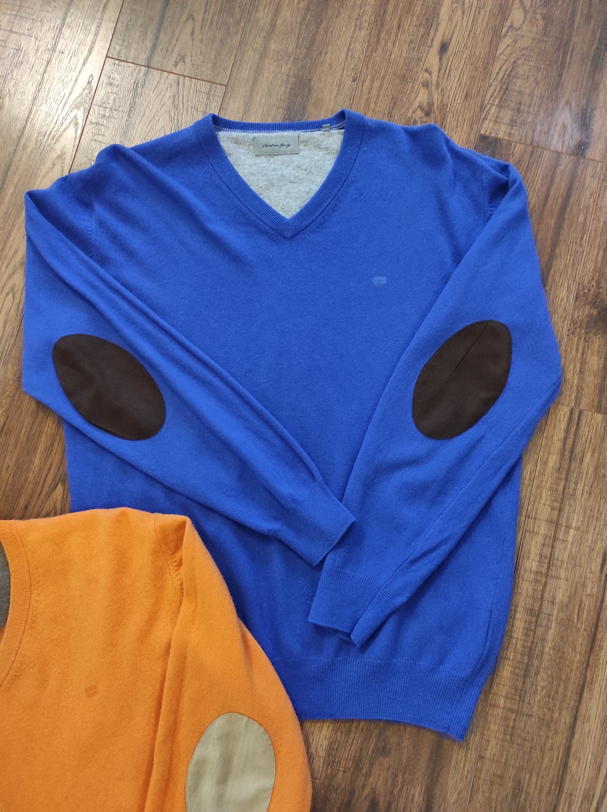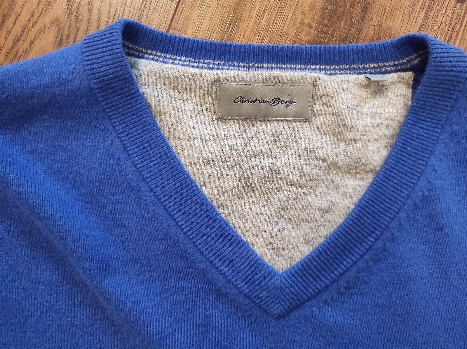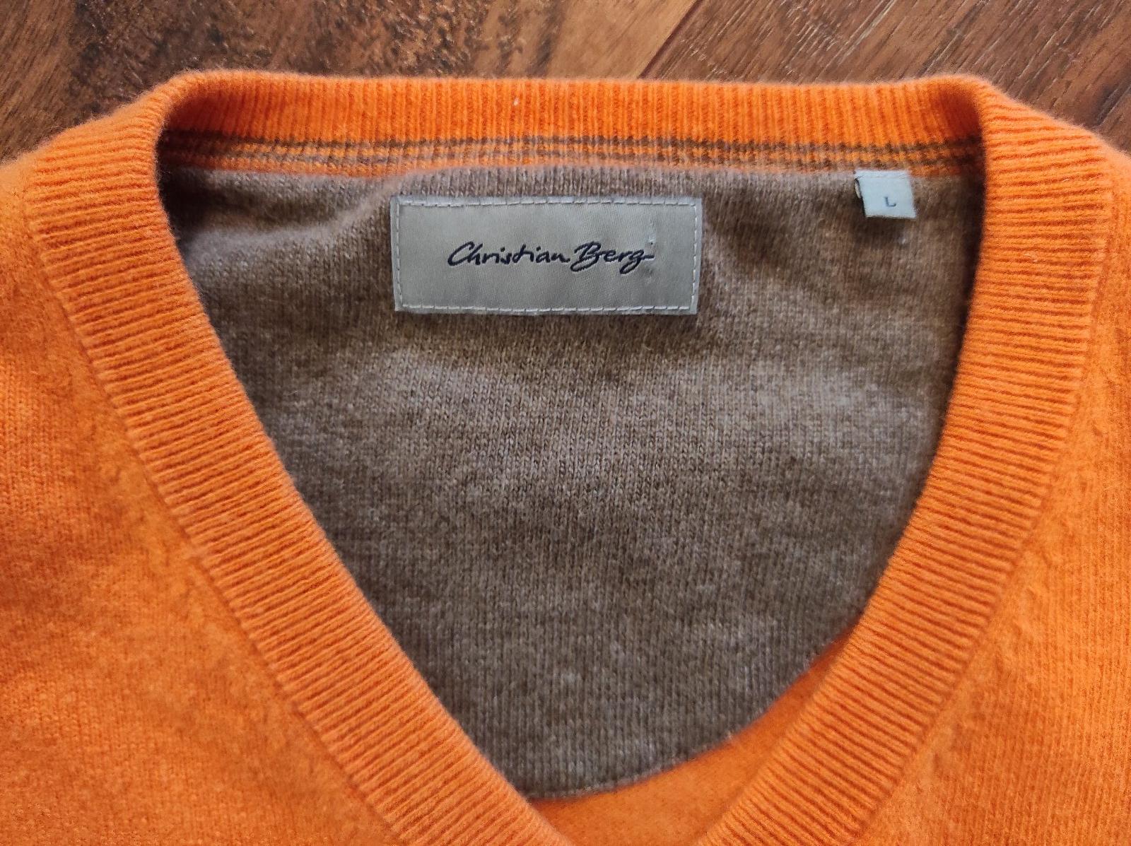 Luxusný pánsky svter Zn. Christian Berg, veľkosť L, oranžová a kráľovská modra farba. Top stav, ako nove. Muz ich mal oblečené raz, nesadla mu veľkosť. Zloženie na štítku, cena 19€ spolu