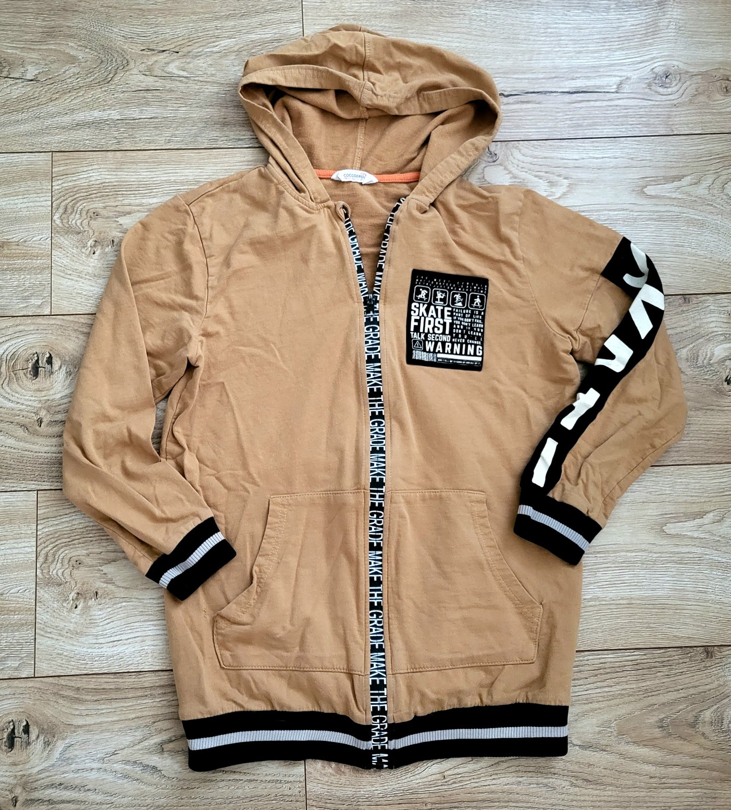Pekná mikinka velk. 158 zn. Coccodrillo. Nosená v peknom stave no napriek tomu pri vreckách zašívaná-viď foto. Na dvir prípadne na doma a pod bundu ešte pekne poslúži. PC bola 18e